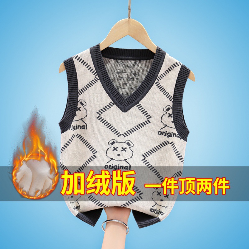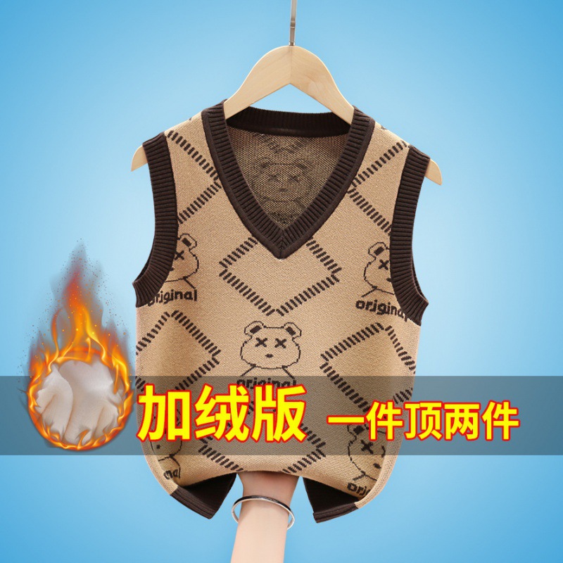 남학생 면 니트 조끼 어린이 스웨터 2024 가을 새 스타일 대형 어린이 V-Neck 울 조끼 민소매 트렌디스토어 가기