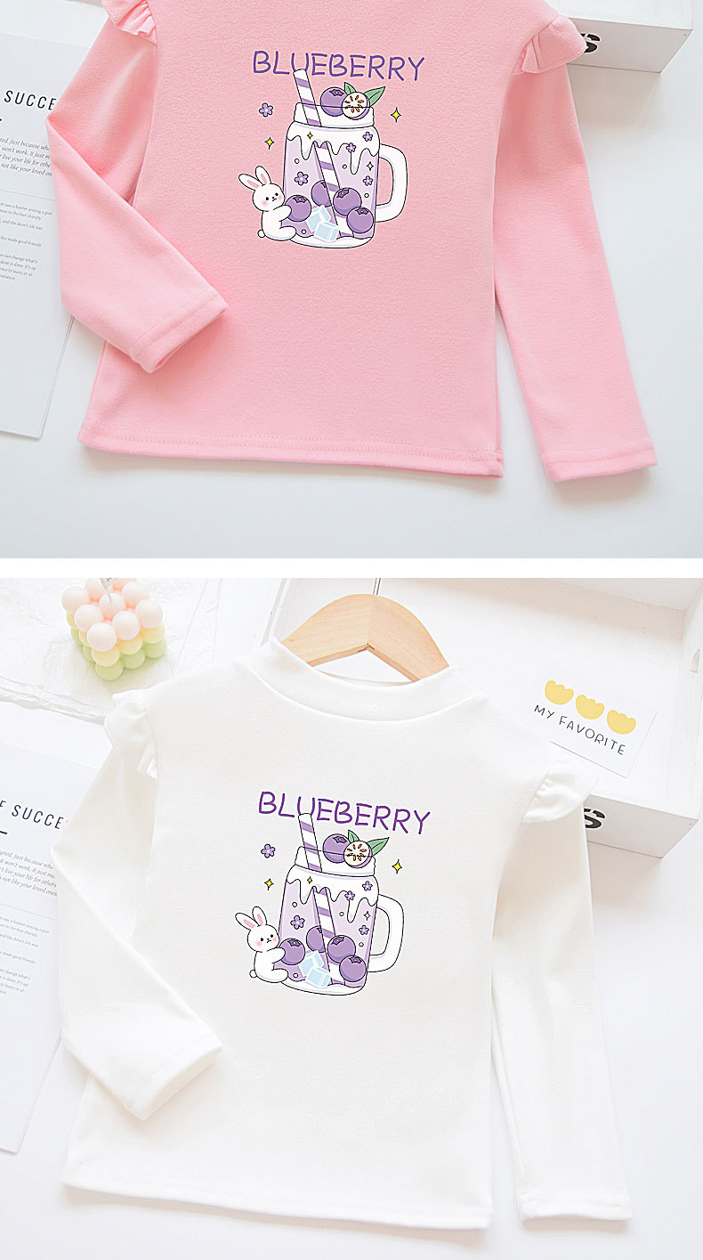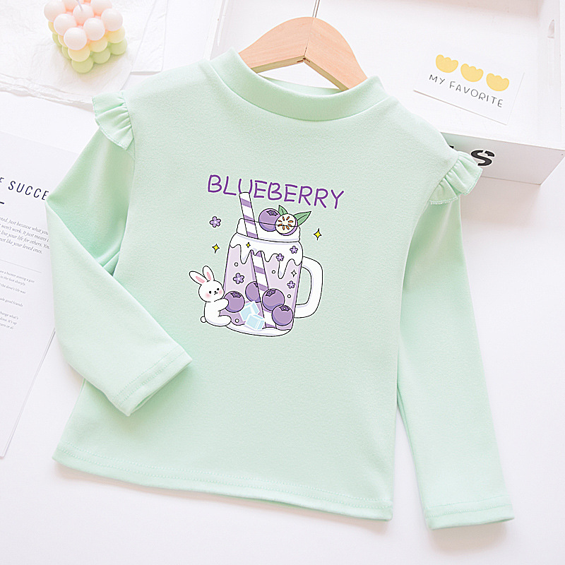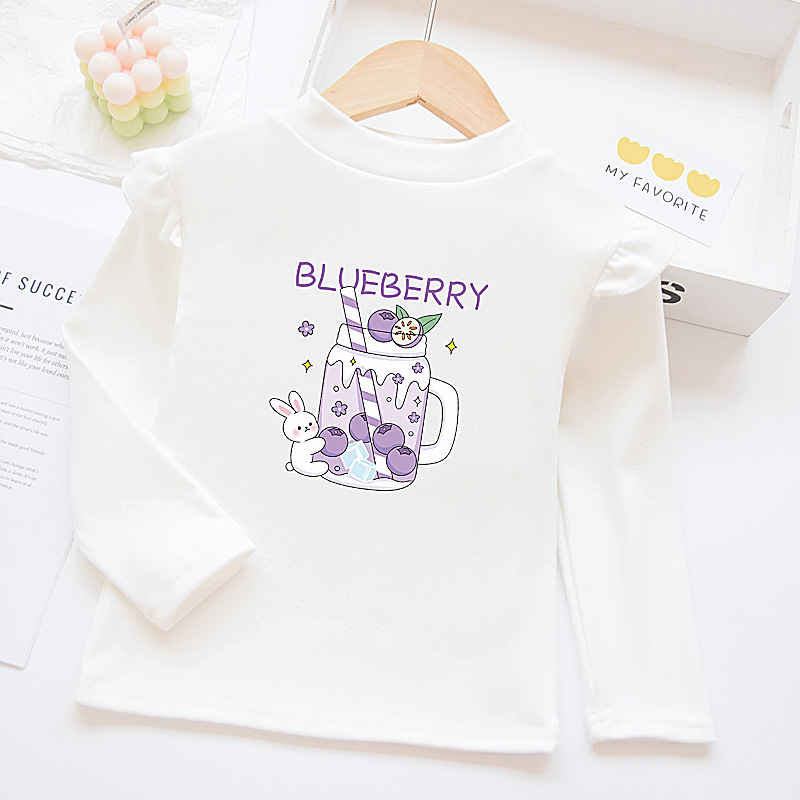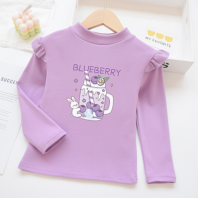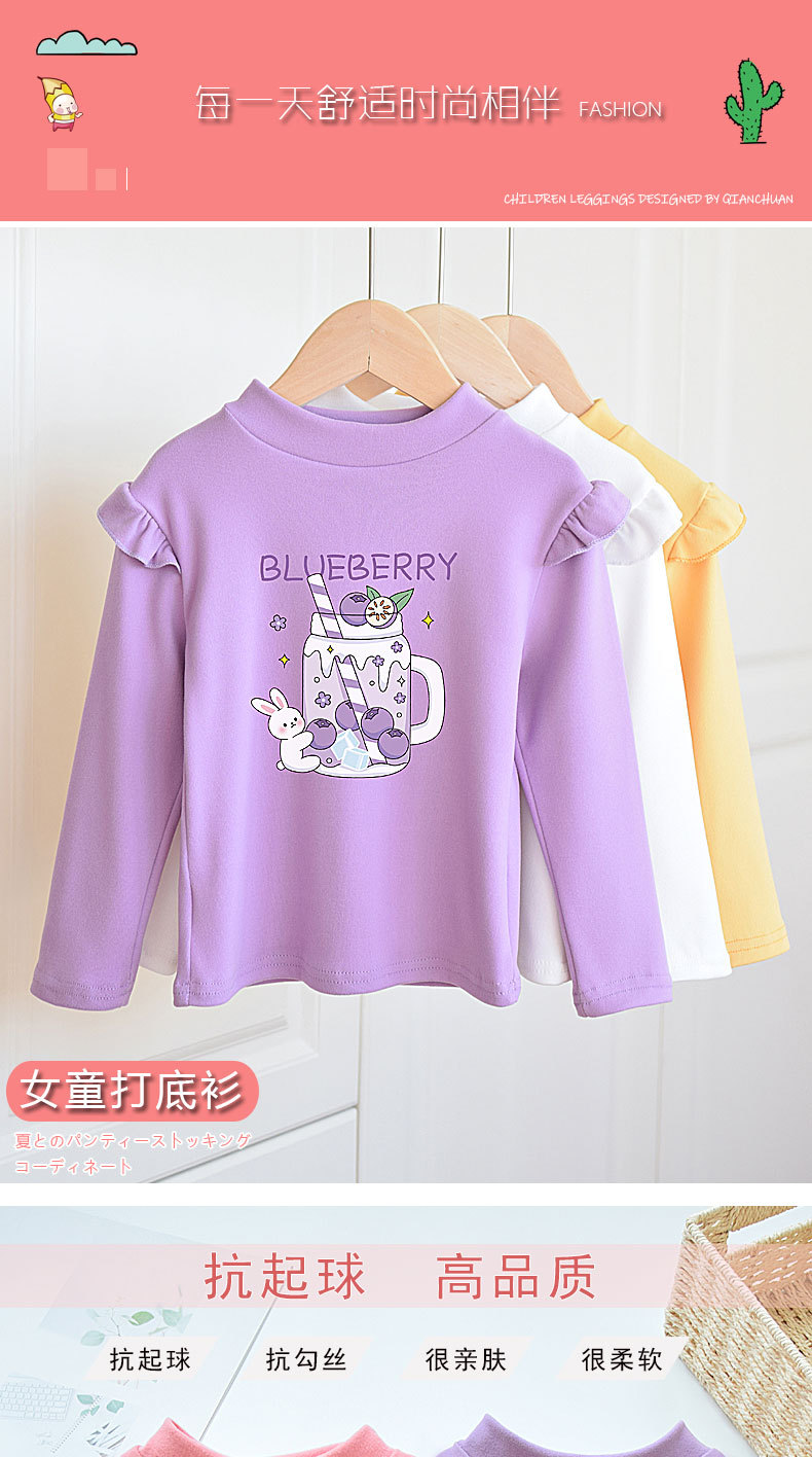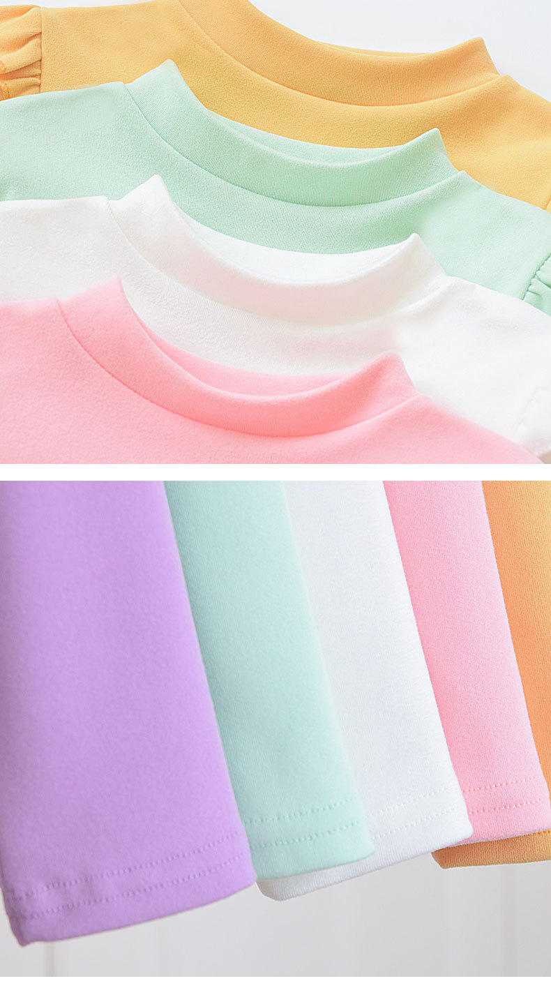 소녀베이스 셔츠 반 높이 칼라 봄과 가을 어린이 벨벳 화이트 소녀의 빅 보이 탑 새로운 얇은 가을 옷