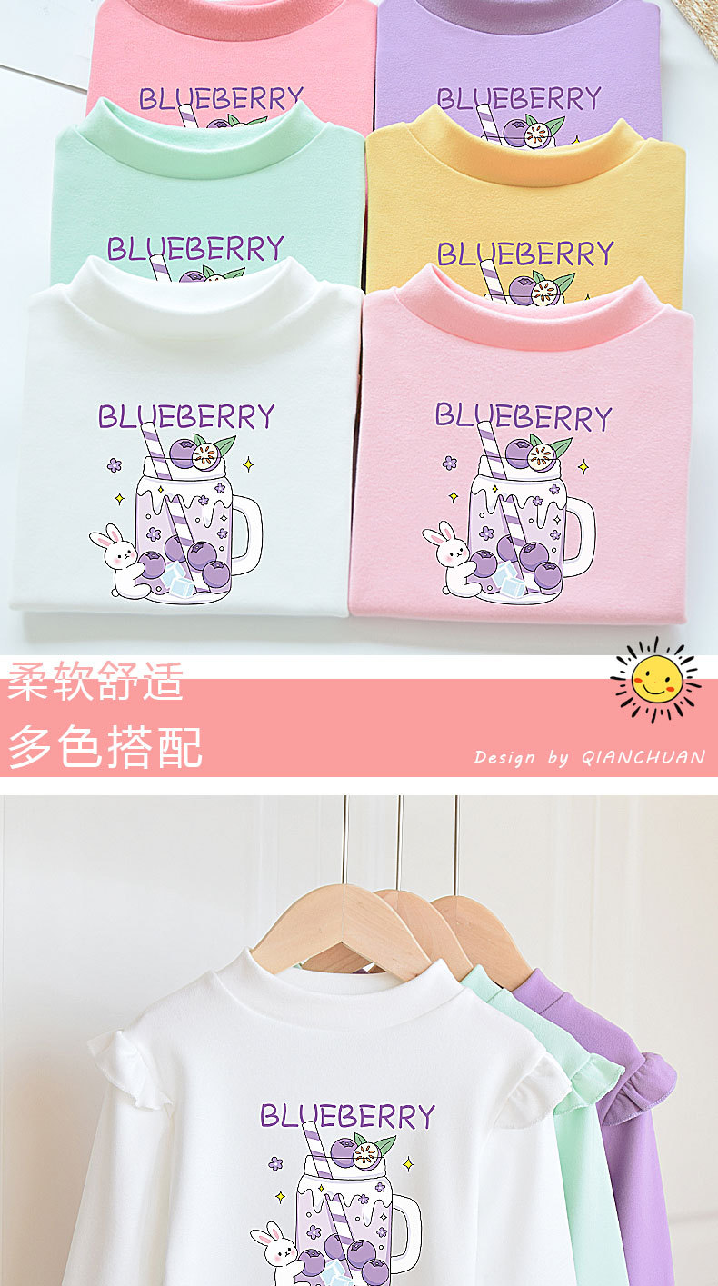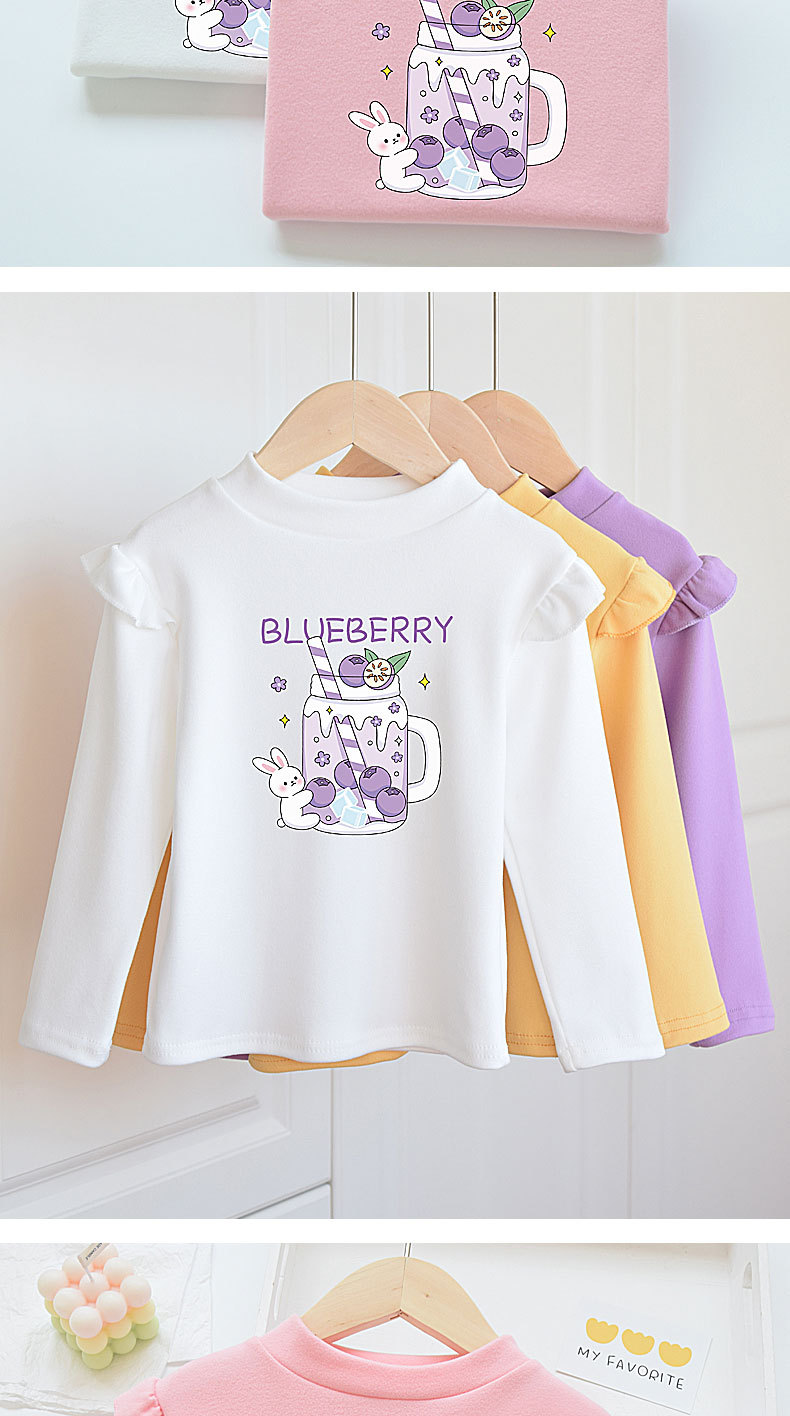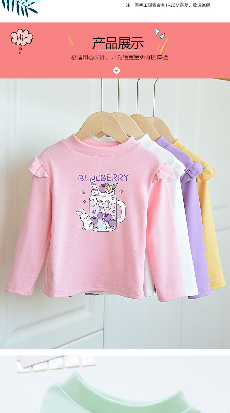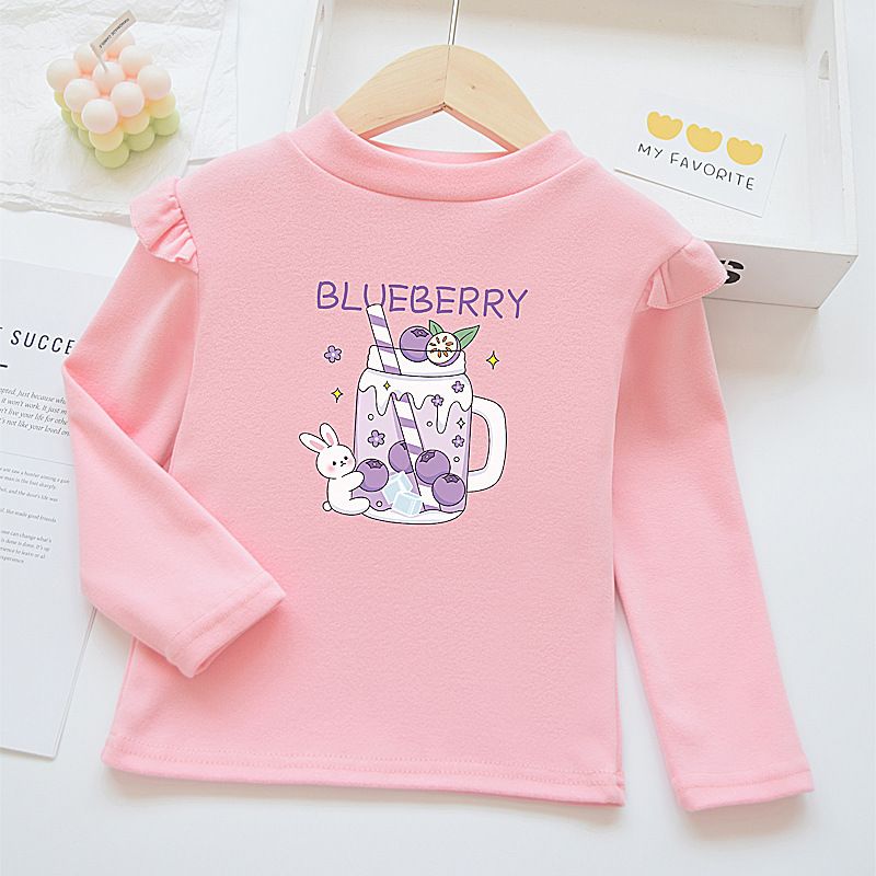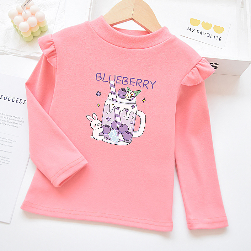 소녀베이스 셔츠 반 높이 칼라 봄과 가을 어린이 벨벳 화이트 소녀의 빅 보이 탑 새로운 얇은 가을 옷