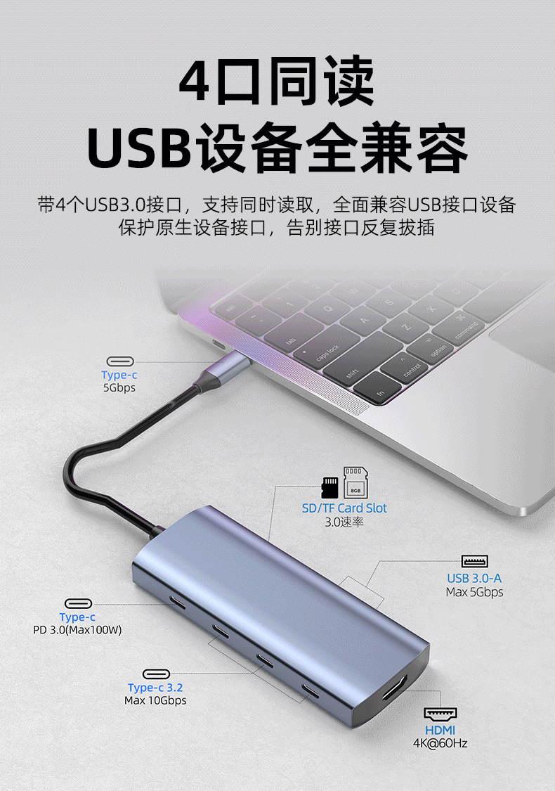 Type-c 도킹 스테이션 USB C 3.2 다기능 허브 10Gbps 확장 독 도킹 스테이션