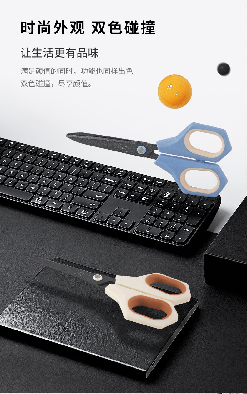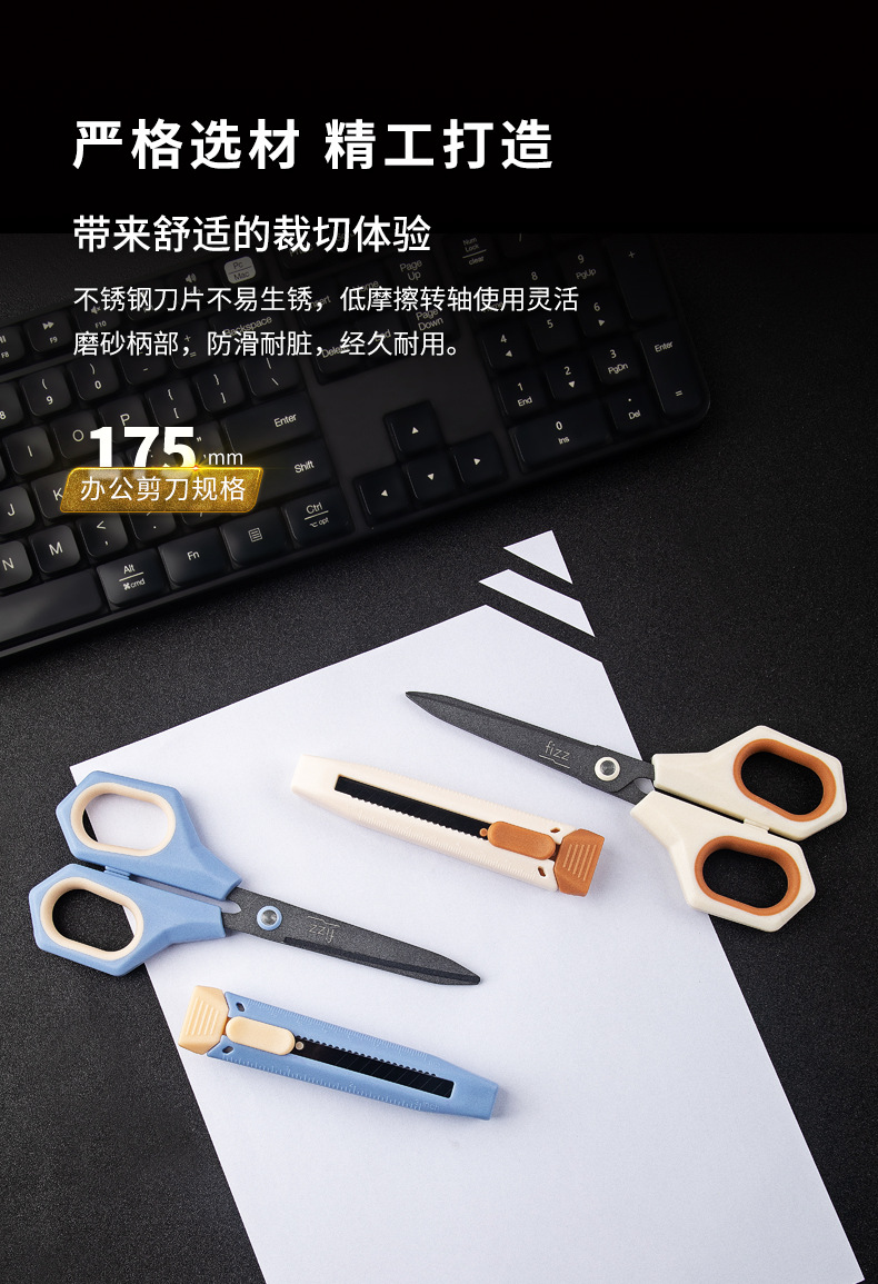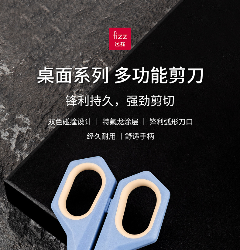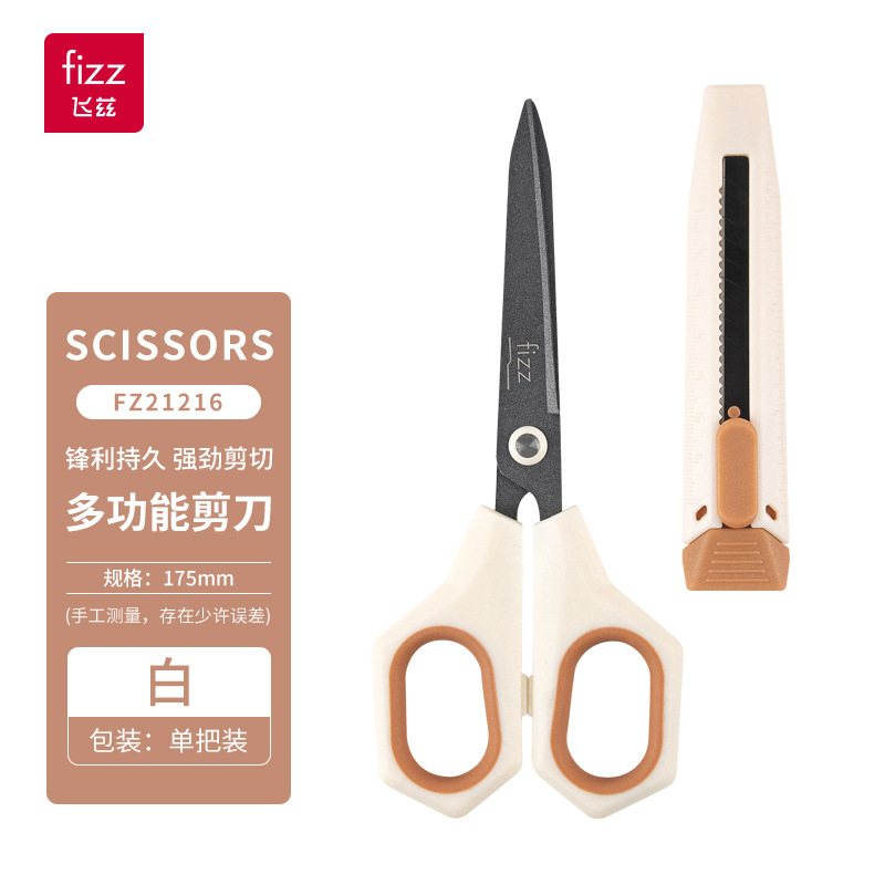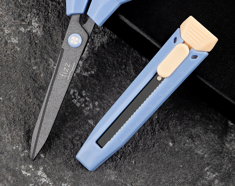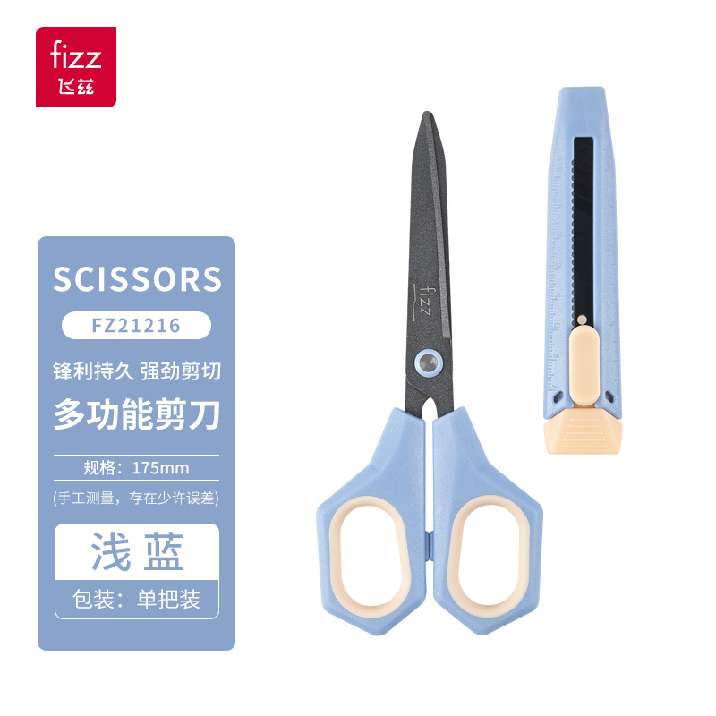 Fizz 새로운 다기능 2 대 1 가위 Teflon 사무실 유틸리티 칼 가위 조합 FZ21216 파란색과 흰색스토어 가기