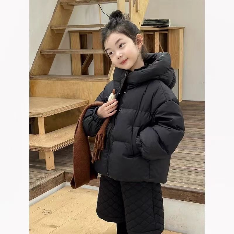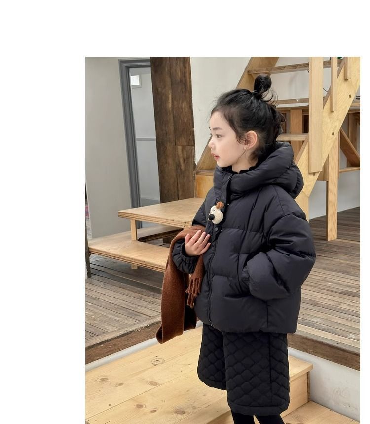 여성 한국 스타일 서양식 흰색 두꺼운 겨울 옷 새로운 어린이 따뜻한 후드 두꺼운 아기 코트스토어 가기