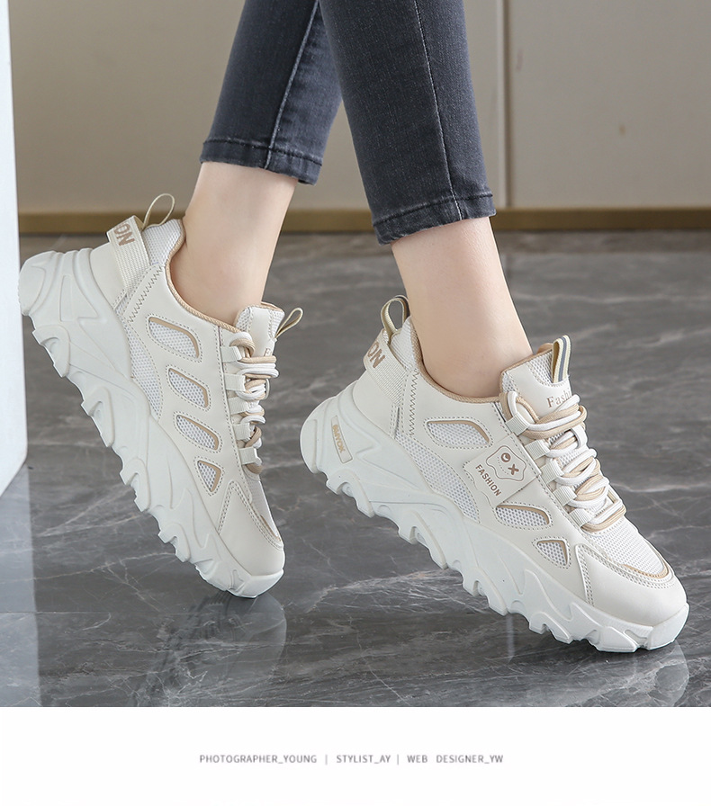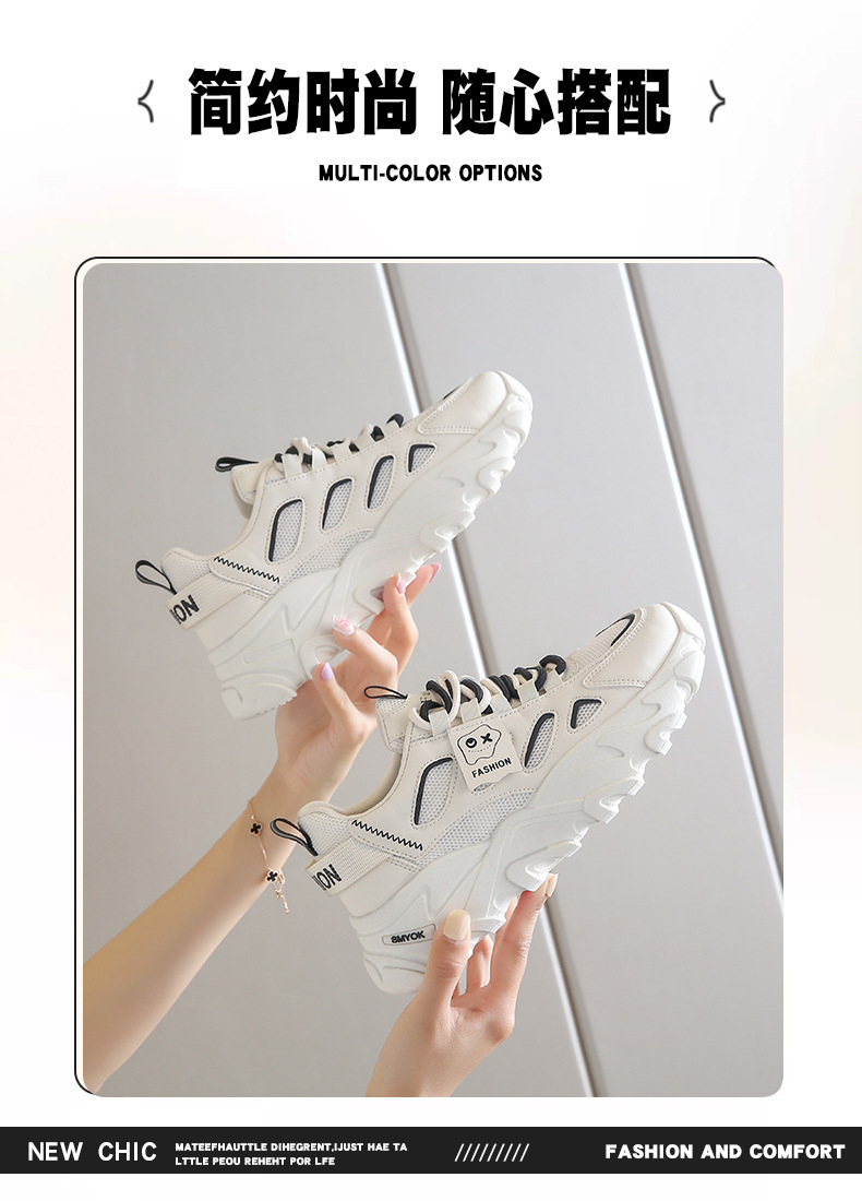 여름 메쉬 신발 여성의 통기성 얇은 2024 새로운 두꺼운 밑창 토르 신발 학생 메쉬 운동화 증가 된 흰색 신발스토어 가기