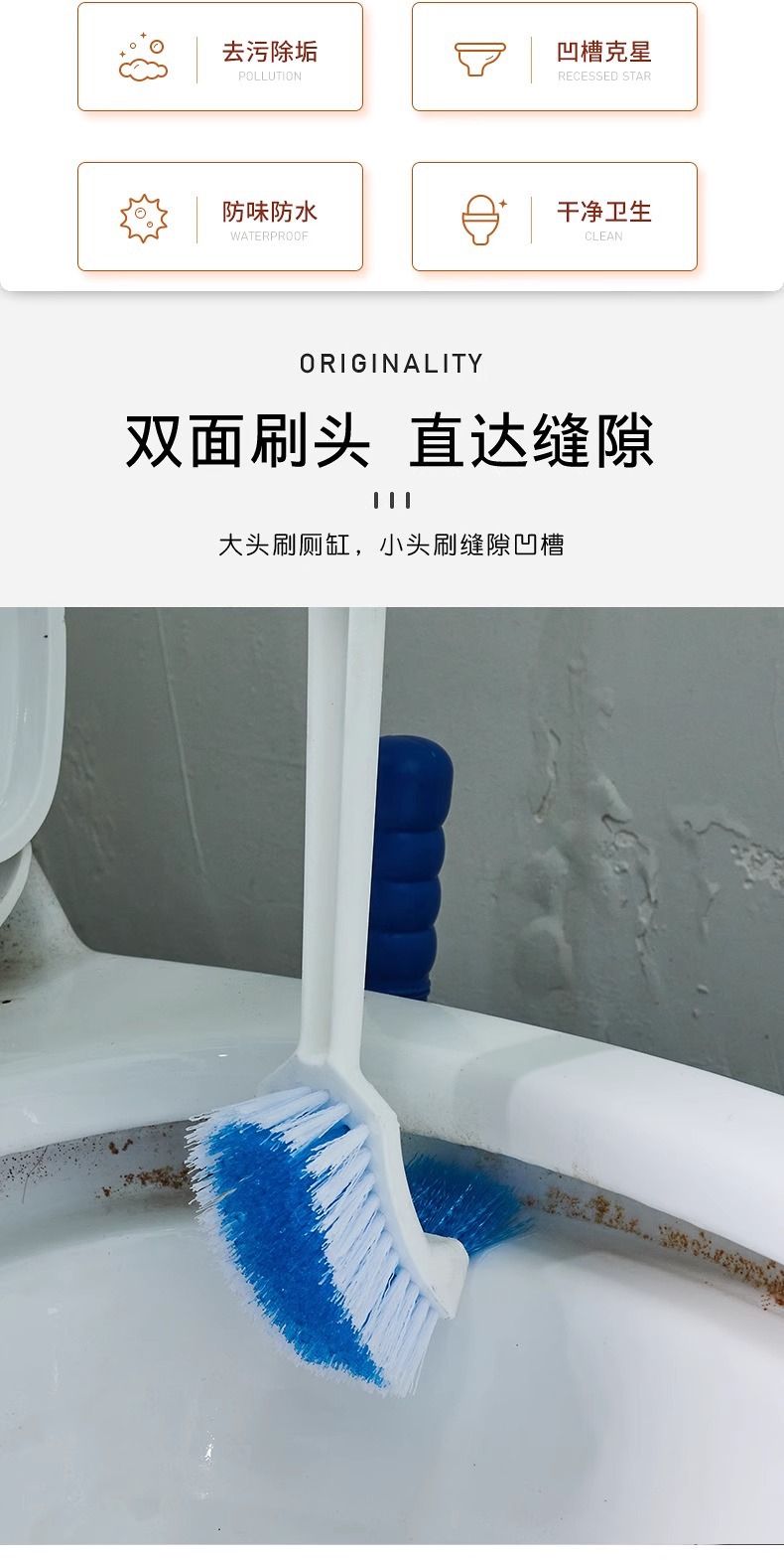 • 파란색과 흰색 양면 변기 브러시