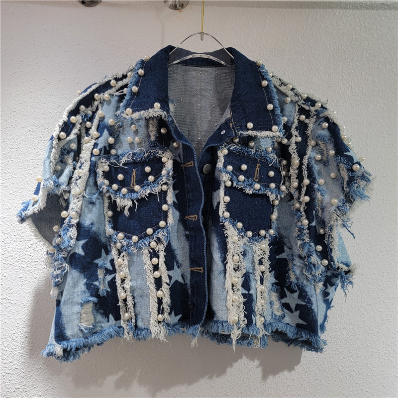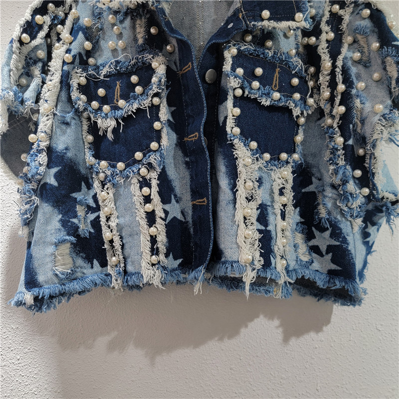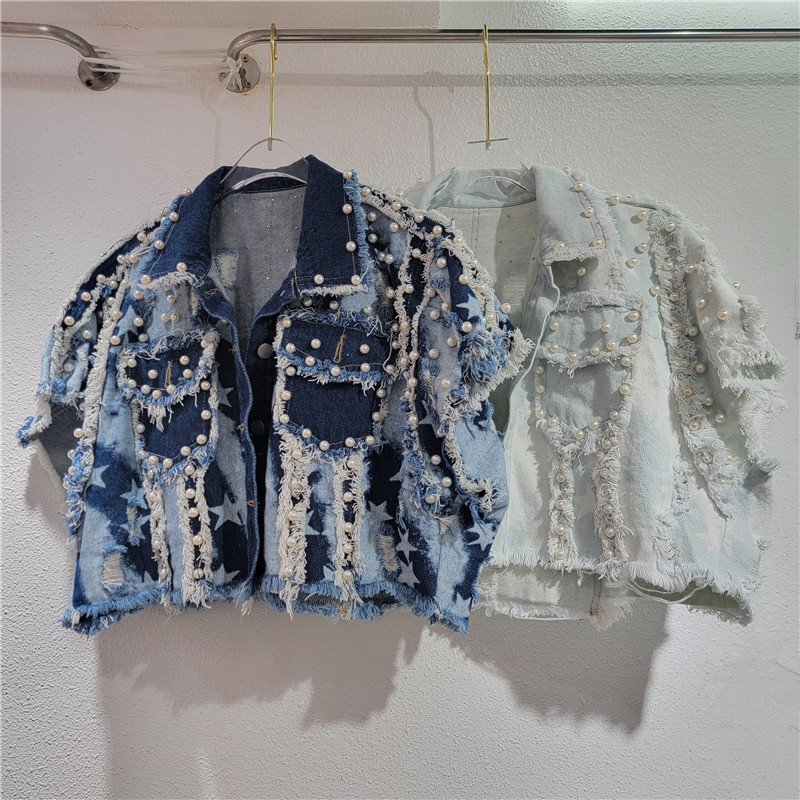 유럽과 미국 스타일의 디자인 느낌 2024 가을 새로운 불규칙한 거친 중공업 네일 비드 복고풍 핫 소녀 데님 말 클립 여성스토어 가기