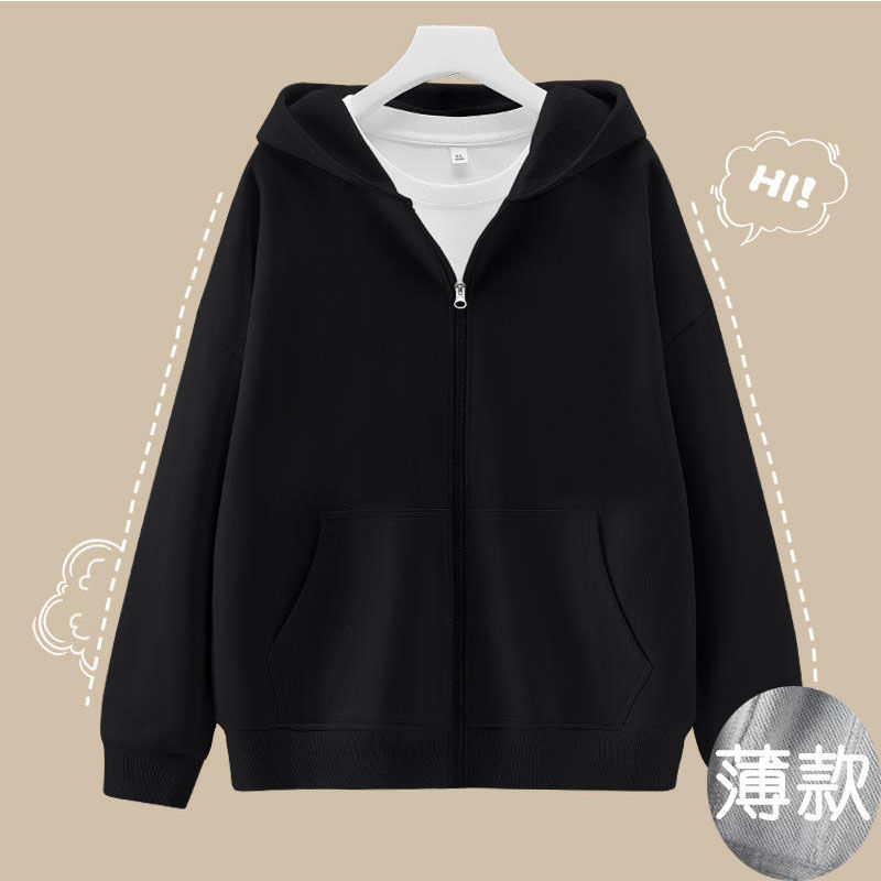 • [지퍼 스웨트셔츠] [얇은 스타일] 블랙