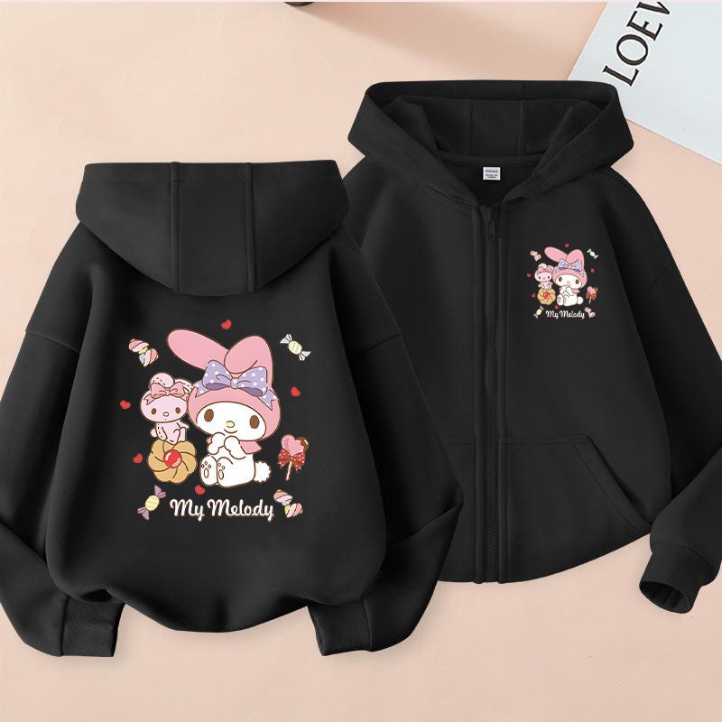 • [지퍼맨투맨] 쿠로미 [후리스] 블랙