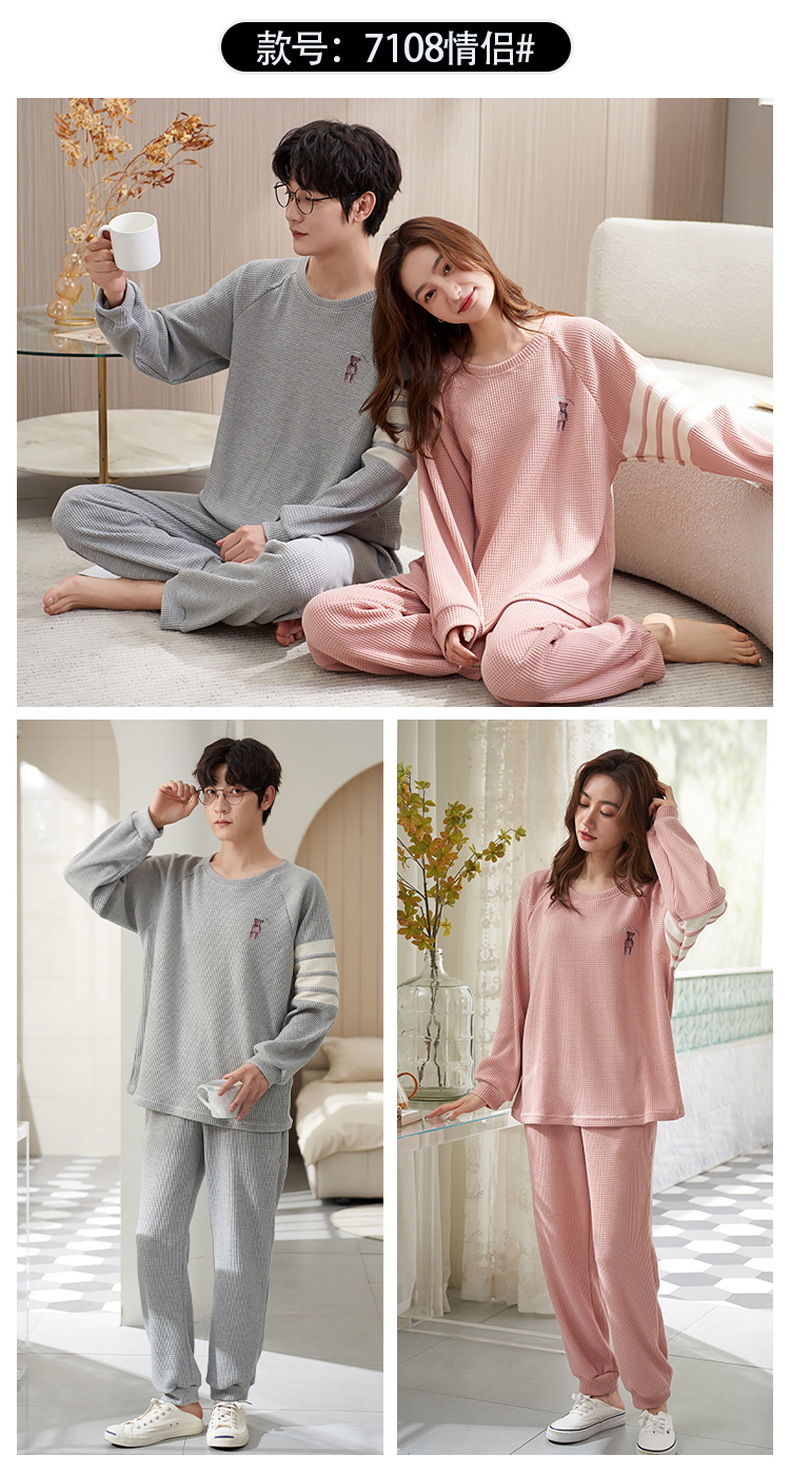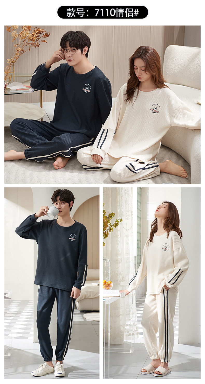 2025 신상 커플 잠옷 봄 가을 여성용 긴팔 긴바지 세트 심플하고 루즈한 남성용 홈웨어스토어 가기