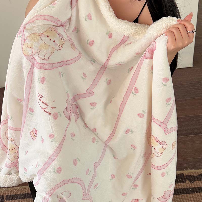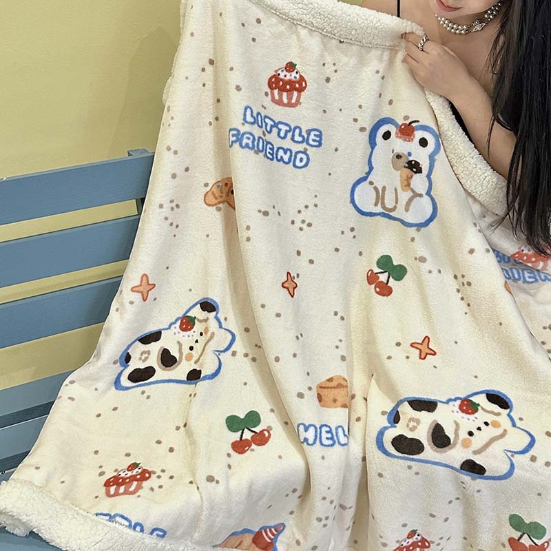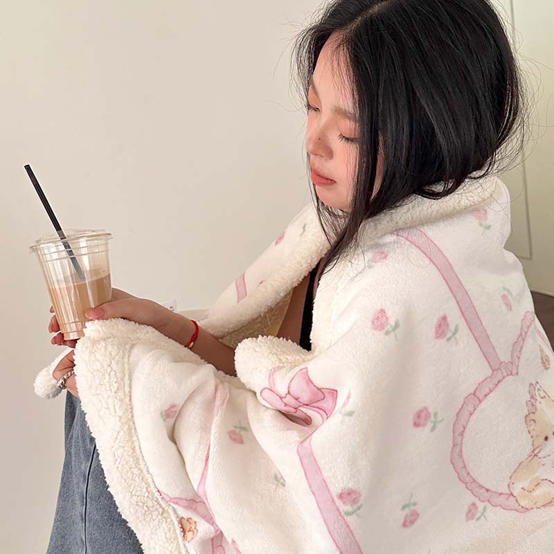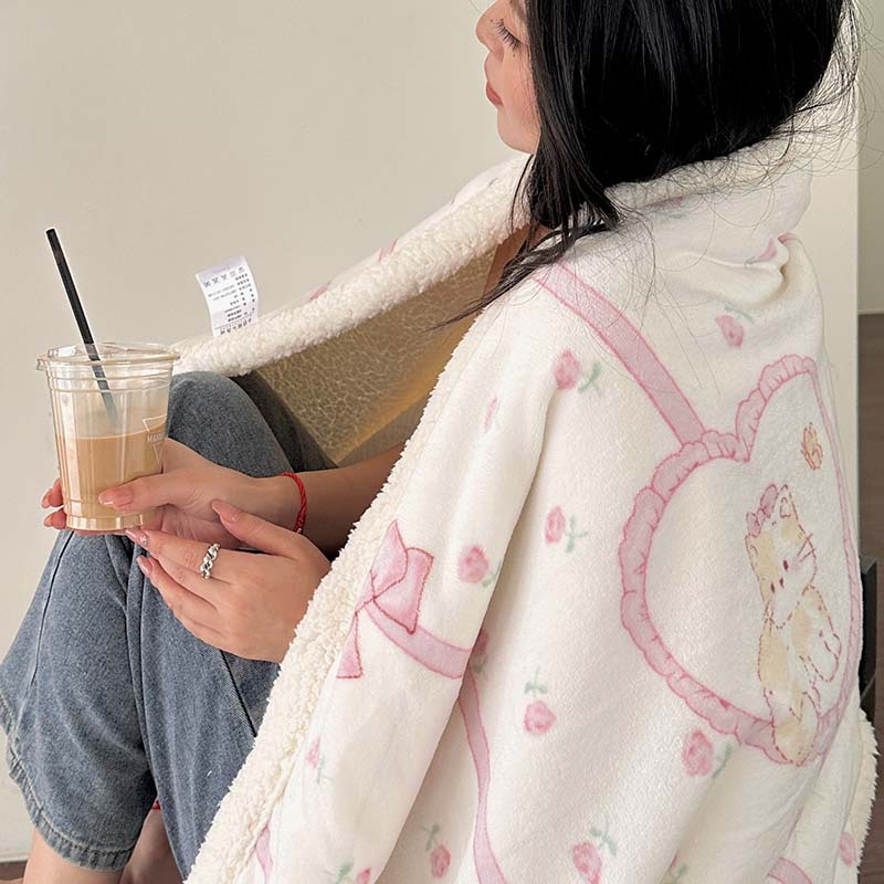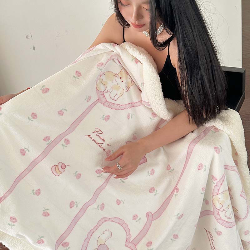 인즈 스타일 밀크 벨벳 담요 두꺼운 양고기 벨벳 담요 사무실 낮잠 목도리 담요 에어컨 소파 담요