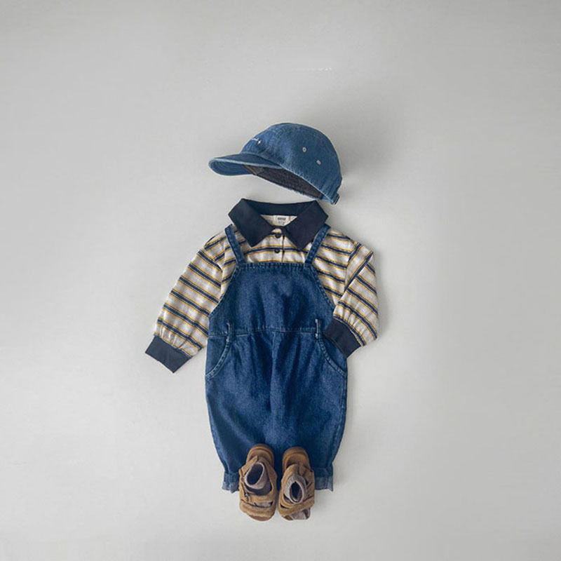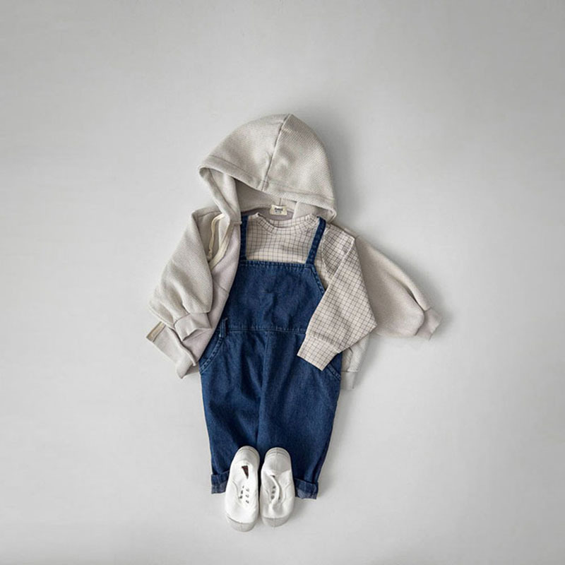 일본-한국 스타일 2024 어린이 가을 착용 한국 아동복 새로운 패션 올매치 데님 스트랩 캐주얼 바지스토어 가기