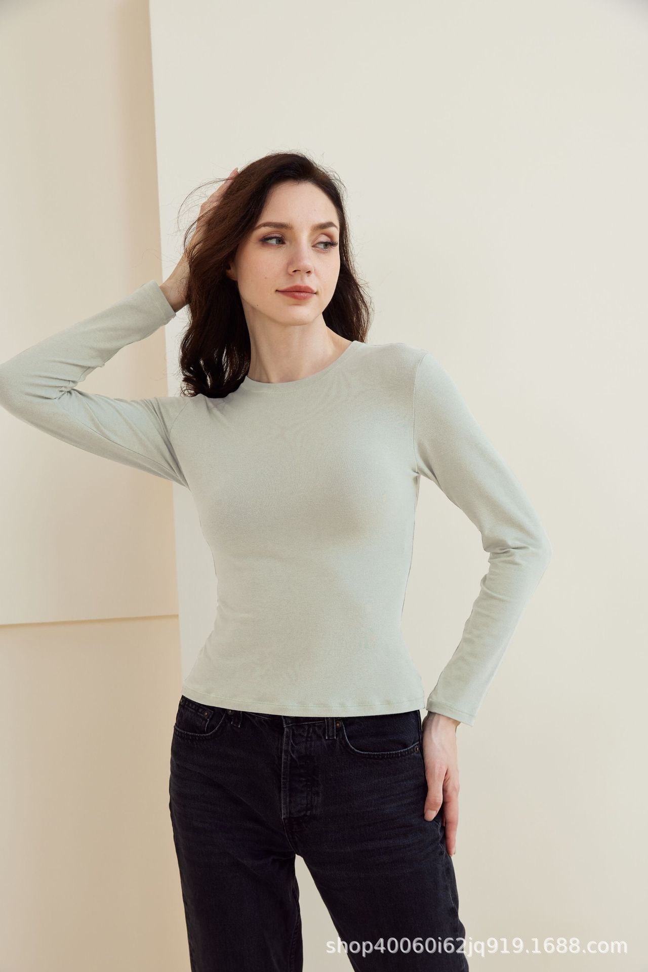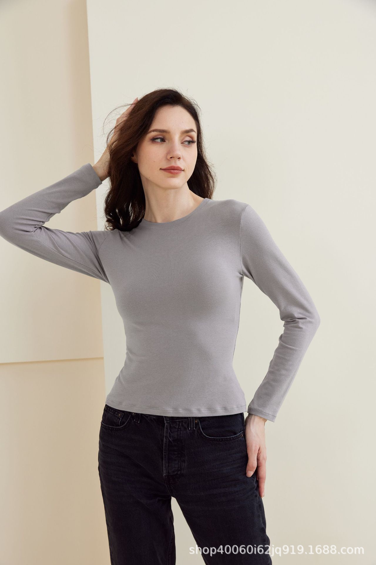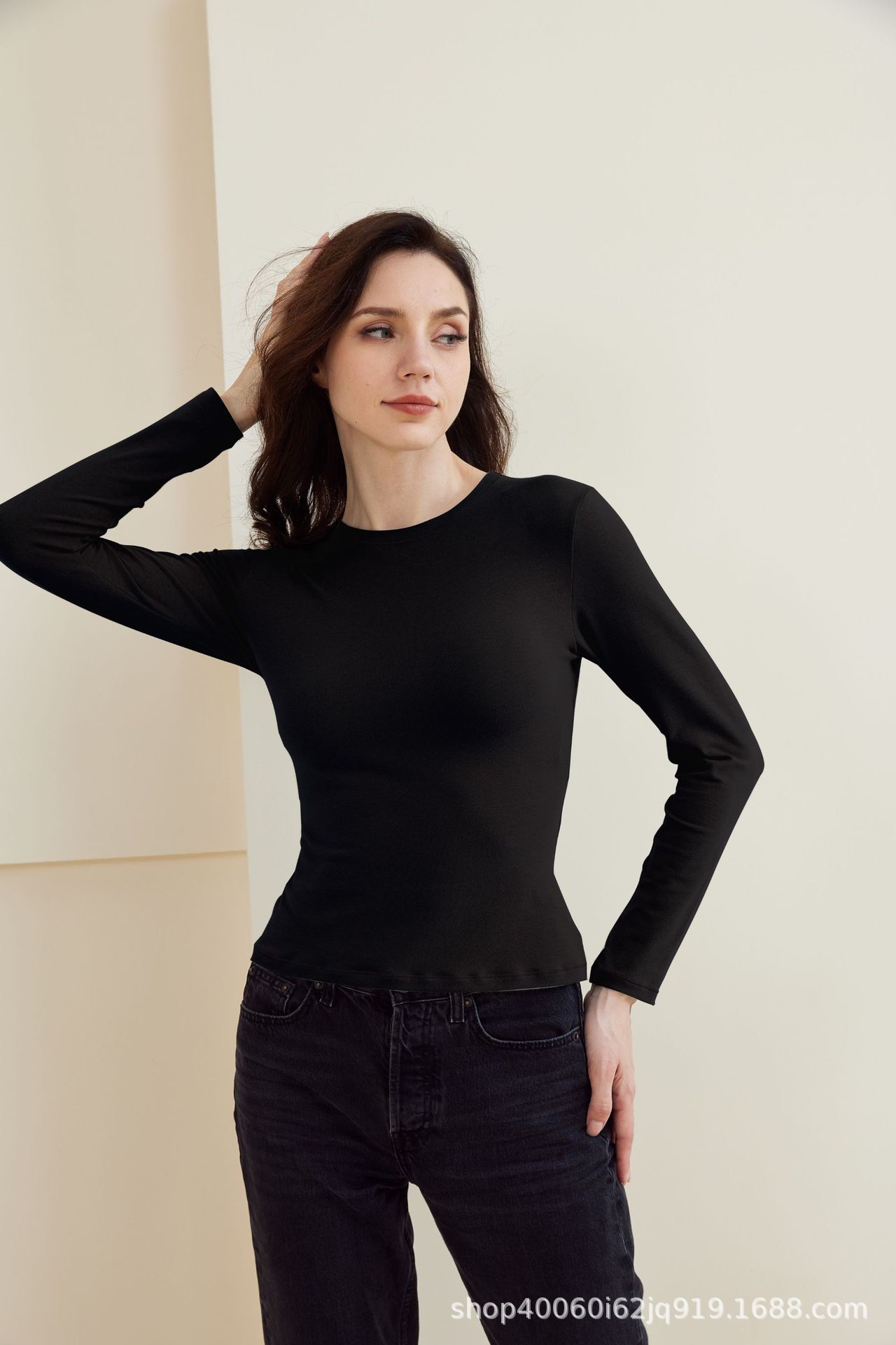 조각 된 Skims베이스 셔츠 순수 코튼 여성용 긴팔 고탄성 라운드 넥베이스 셔츠 여성용 가을 하이 엔드 센스 뉴 슬림 핏