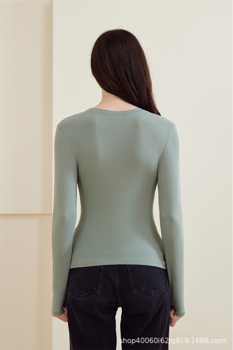 조각 된 Skims베이스 셔츠 순수 코튼 여성용 긴팔 고탄성 라운드 넥베이스 셔츠 여성용 가을 하이 엔드 센스 뉴 슬림 핏스토어 가기
