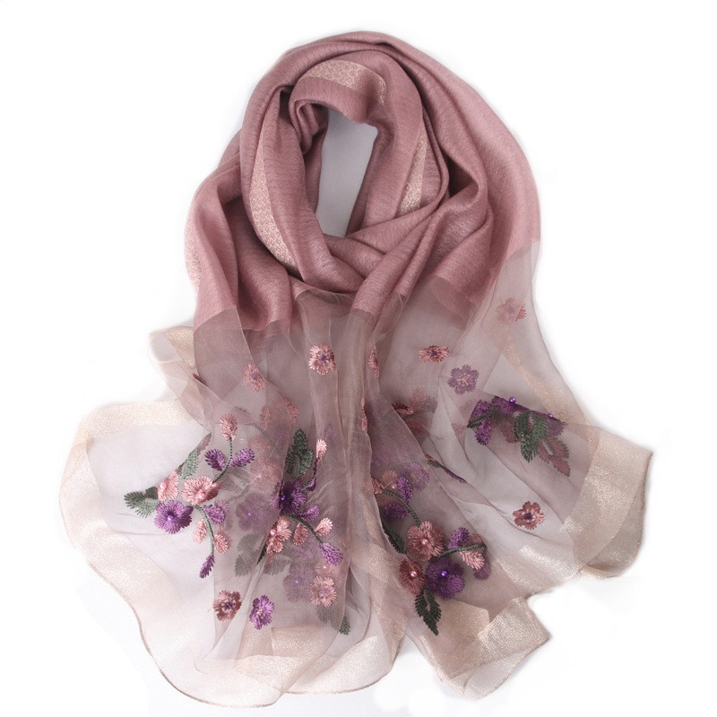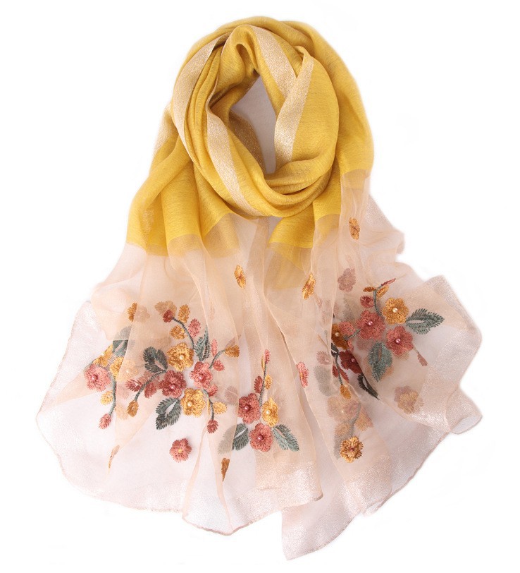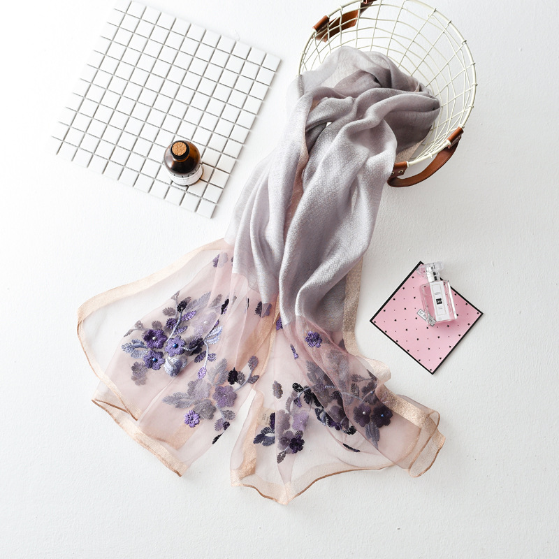 자수 자수 손으로 구슬 실크 울 스카프 여성의 봄과 가을 조커 솔리드 컬러 스카프스토어 가기