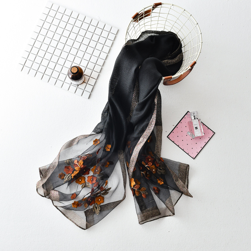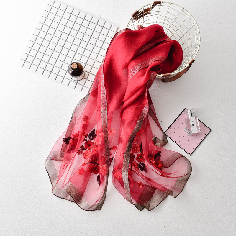 자수 자수 손으로 구슬 실크 울 스카프 여성의 봄과 가을 조커 솔리드 컬러 스카프