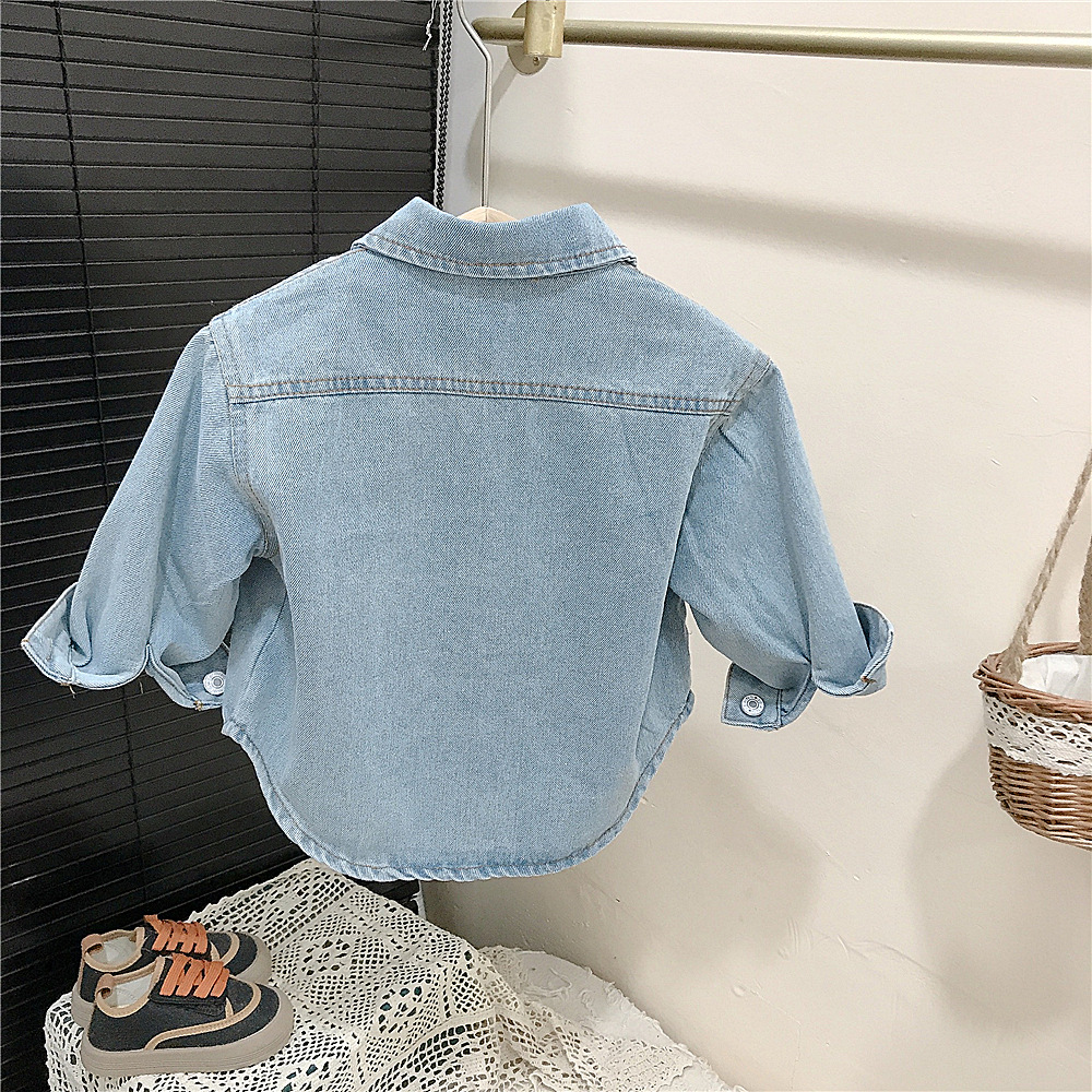 소녀 만화 고양이 데님 셔츠 봄과 가을 한국 스타일 남성 아기 가을 셔츠 긴 소매 낙서 코트 대외 무역스토어 가기