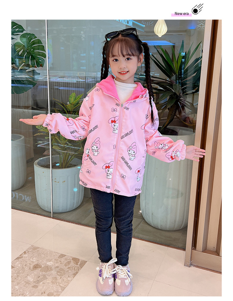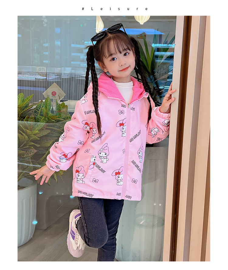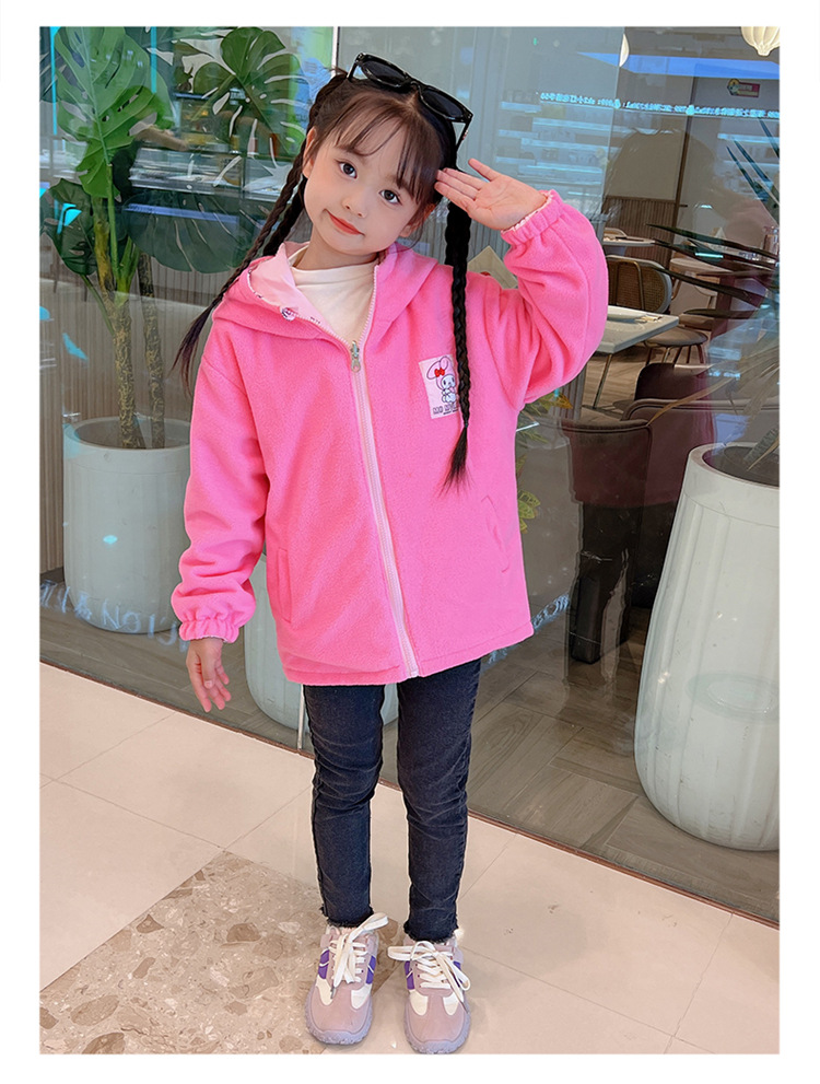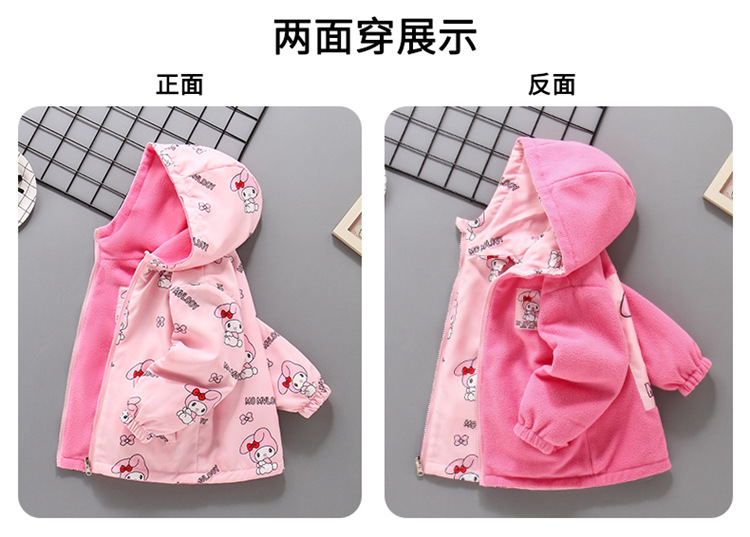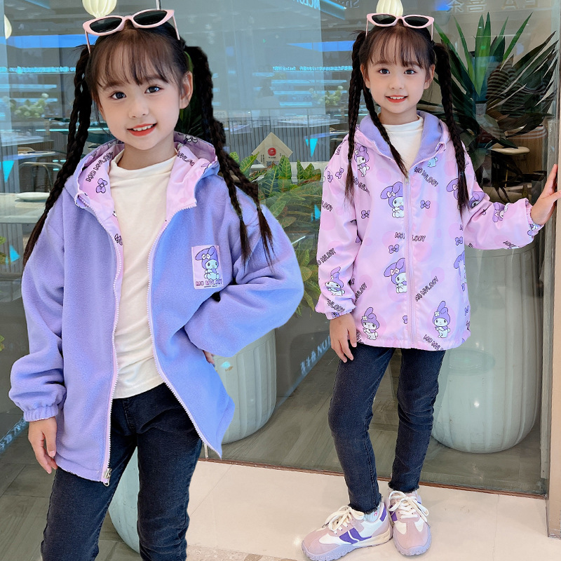 소녀들의 봄과 가을 코트 러시 옷 2024 새로운 어린이 기모 가을과 겨울 양면 재킷 큰 어린이 바람막이