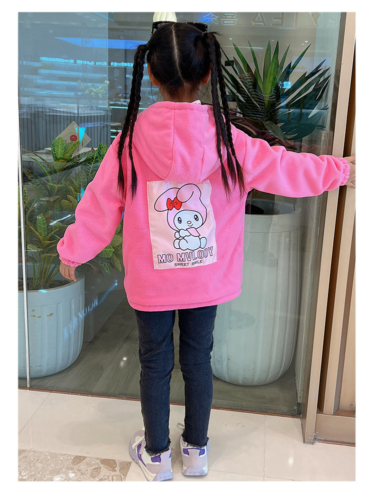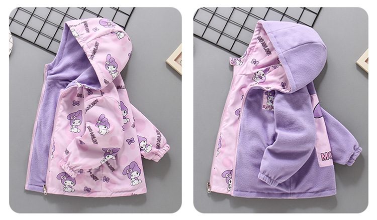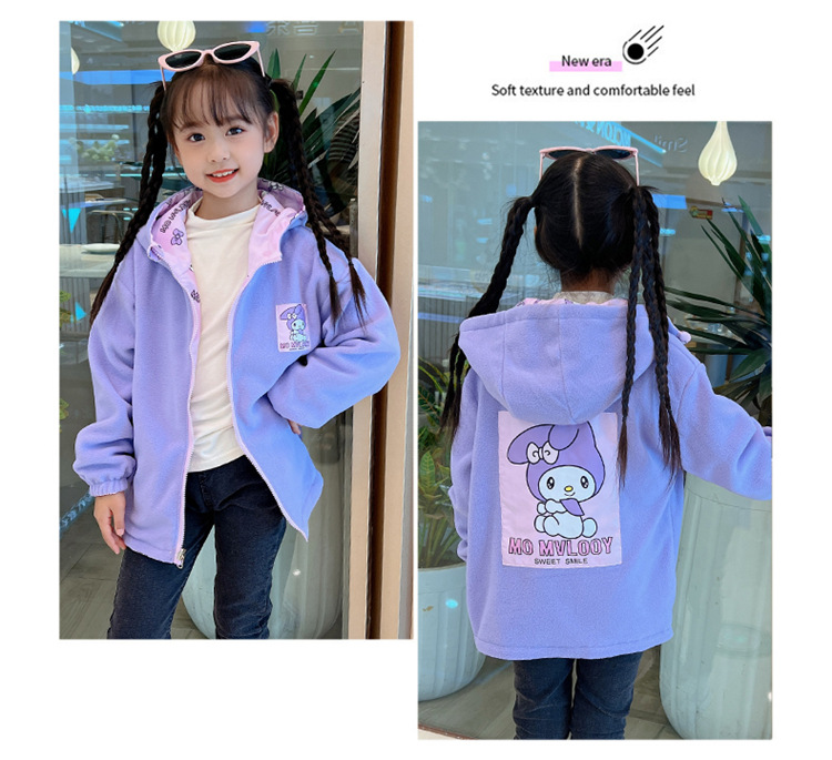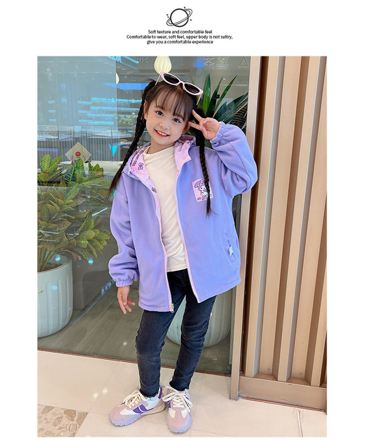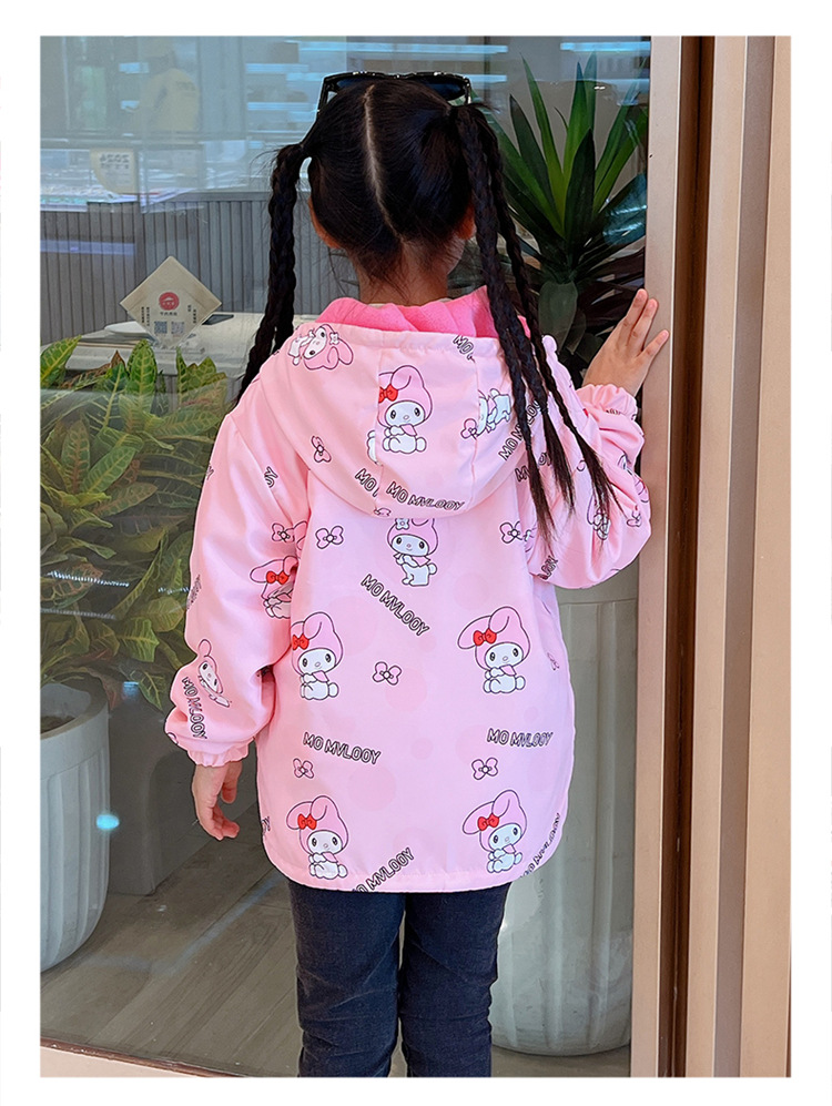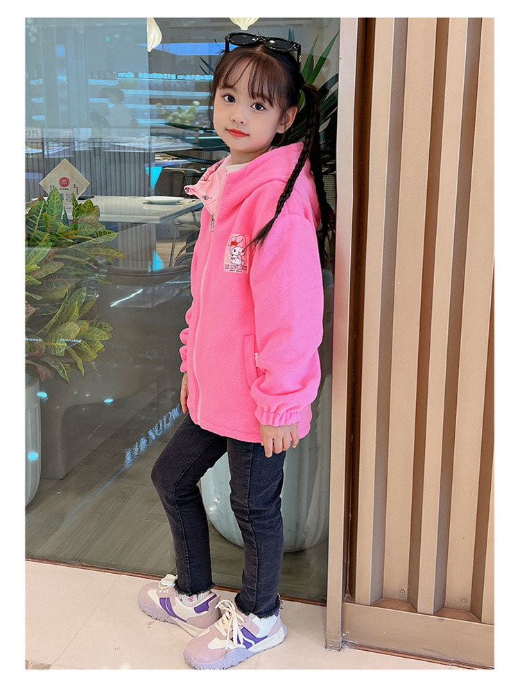 소녀들의 봄과 가을 코트 러시 옷 2024 새로운 어린이 기모 가을과 겨울 양면 재킷 큰 어린이 바람막이