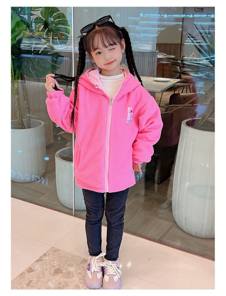 소녀들의 봄과 가을 코트 러시 옷 2024 새로운 어린이 기모 가을과 겨울 양면 재킷 큰 어린이 바람막이스토어 가기