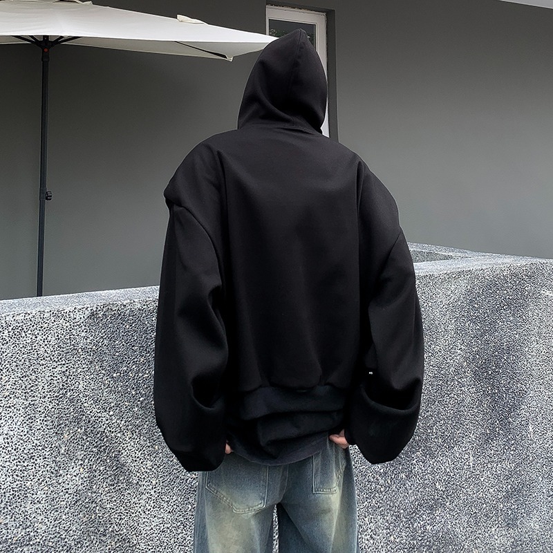 튀긴 거리 프로필 후드 카디건 스웨터 남자 2024 년 봄과 가을 새로운 짧은 어깨 패드 캐주얼 스포츠 자켓 탑스토어 가기
