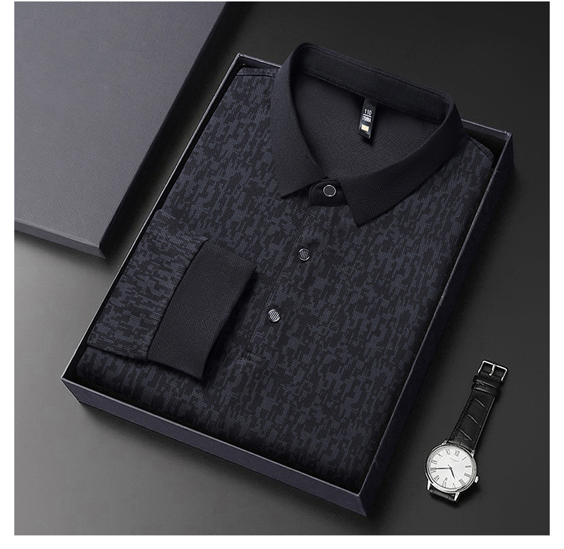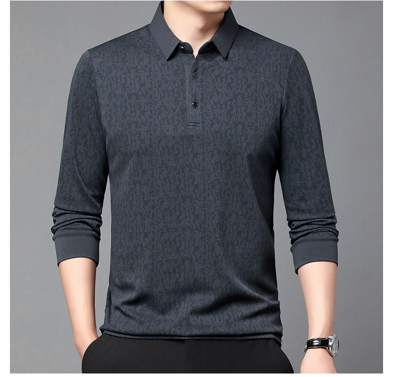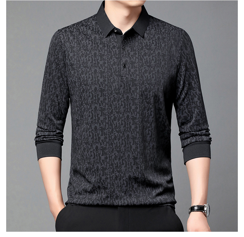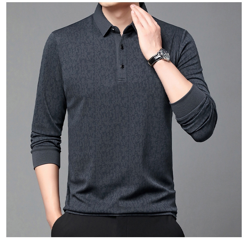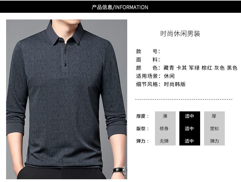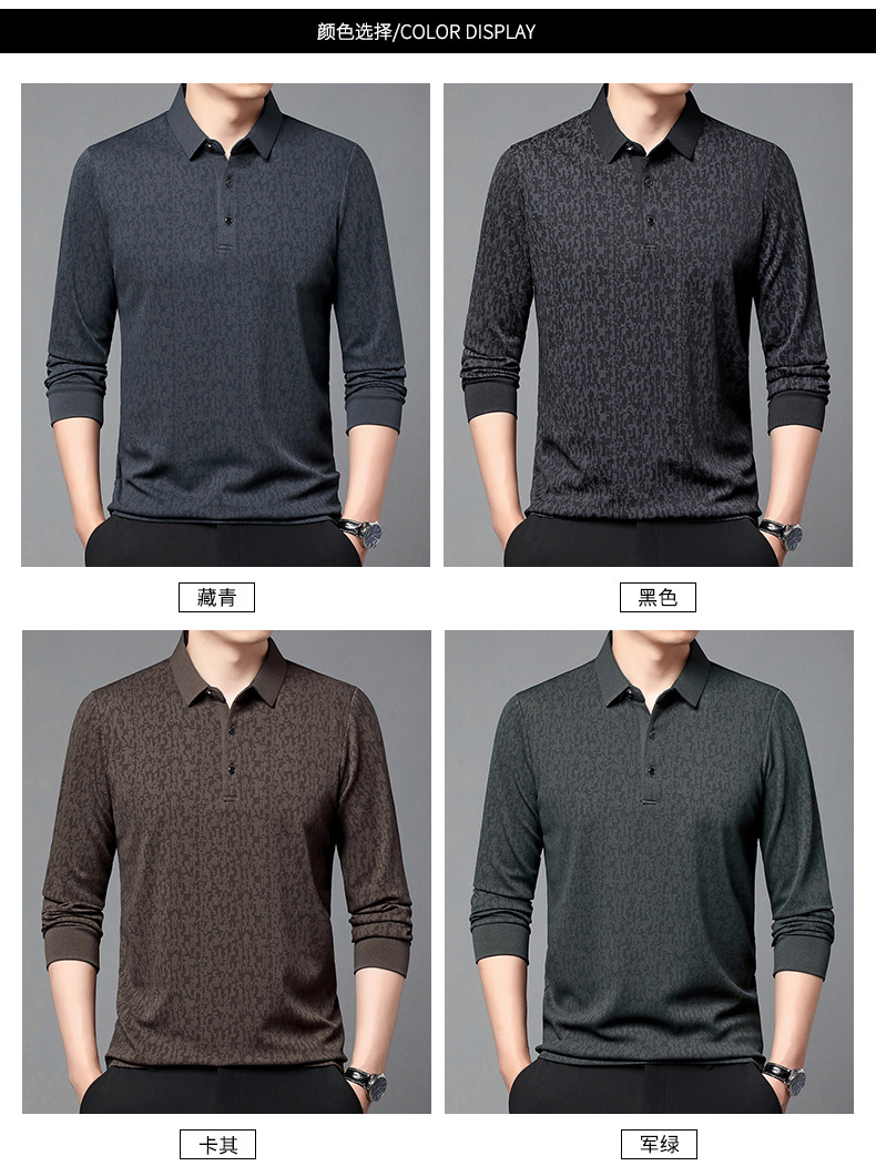 라이브 뜨거운 긴 소매 폴로 셔츠 남자의 가을 새로운 캐주얼 패션 옷깃 중년 남성 긴 소매 티셔츠 탑