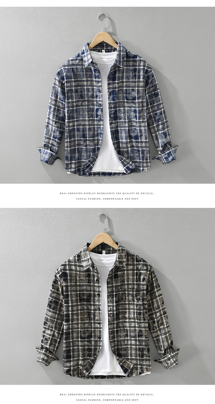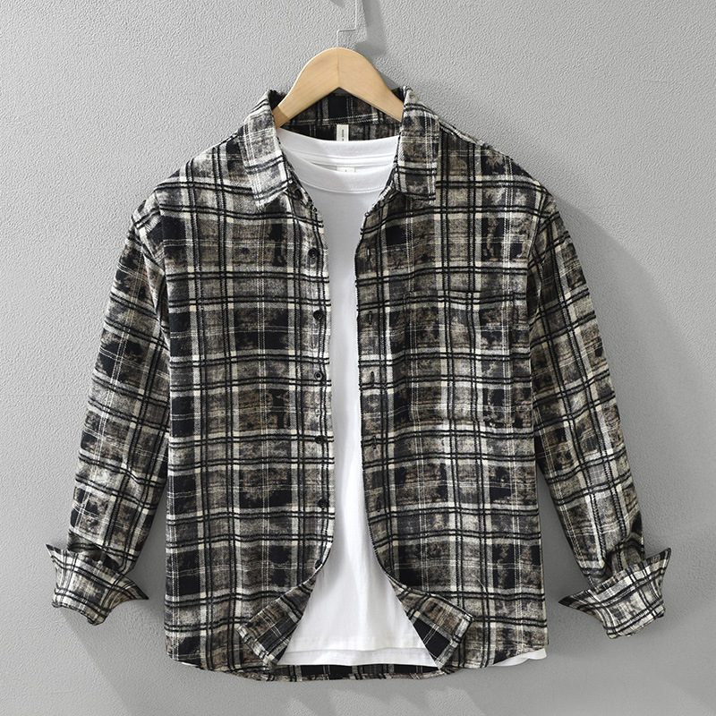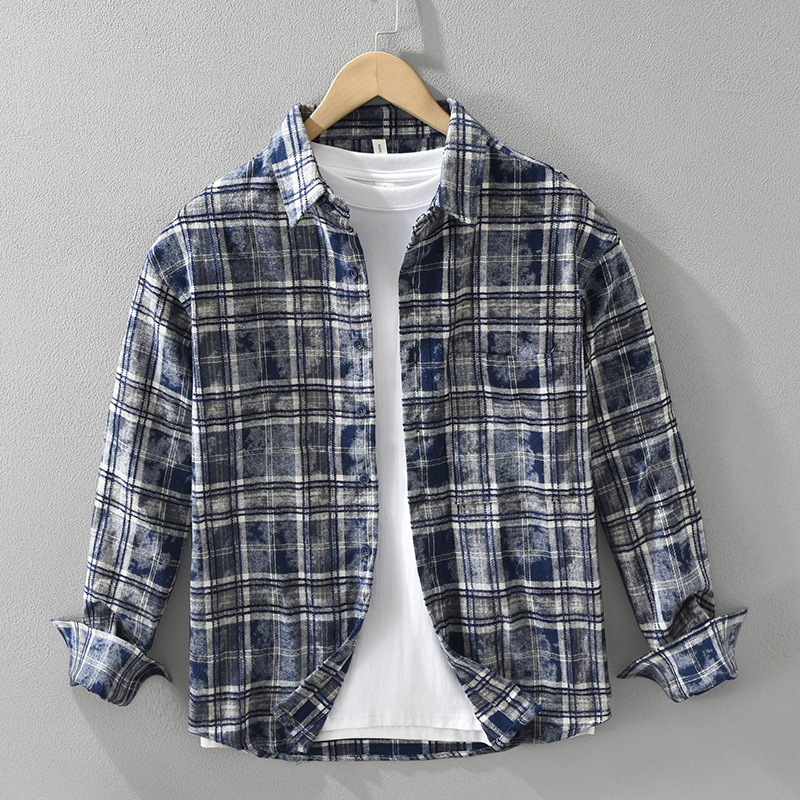 8912 일본 유행 격자 무늬 긴팔 셔츠 남성 패션 캐주얼 다목적 예술적 루즈 탑 드롭 배송스토어 가기