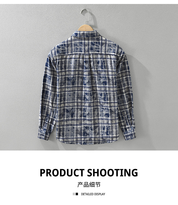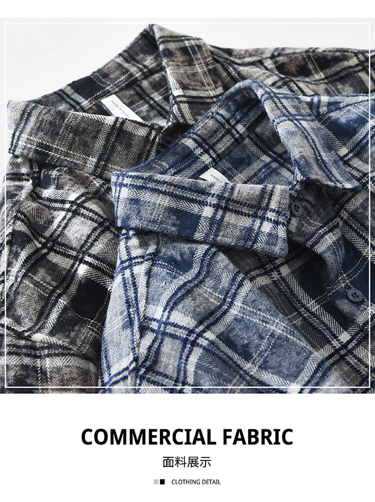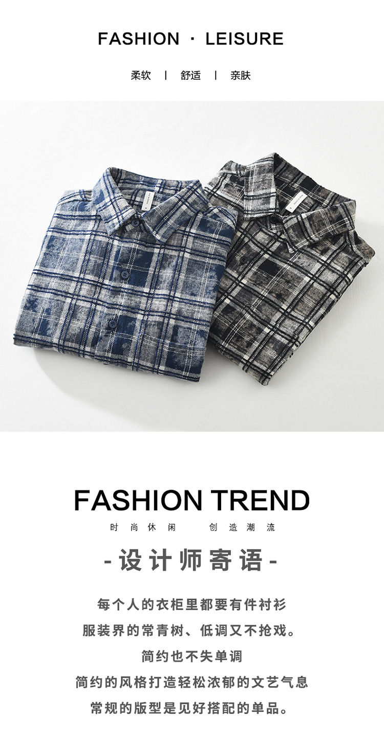 8912 일본 유행 격자 무늬 긴팔 셔츠 남성 패션 캐주얼 다목적 예술적 루즈 탑 드롭 배송