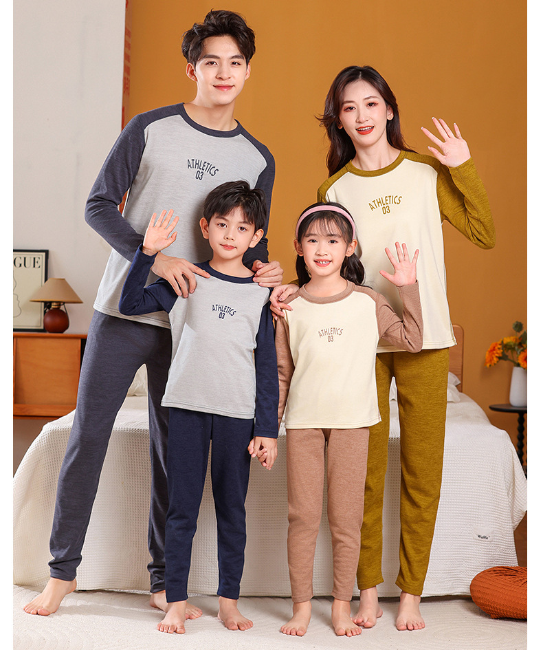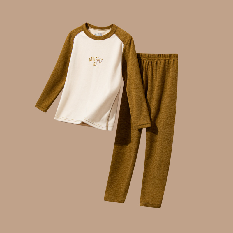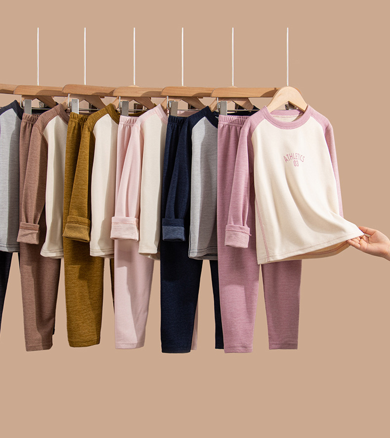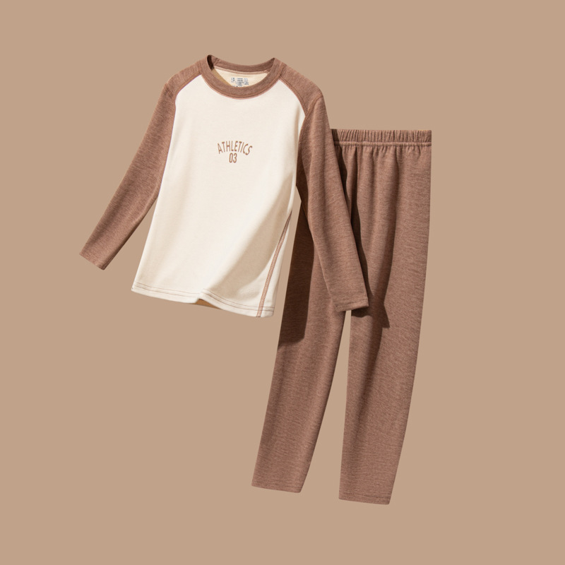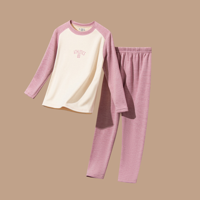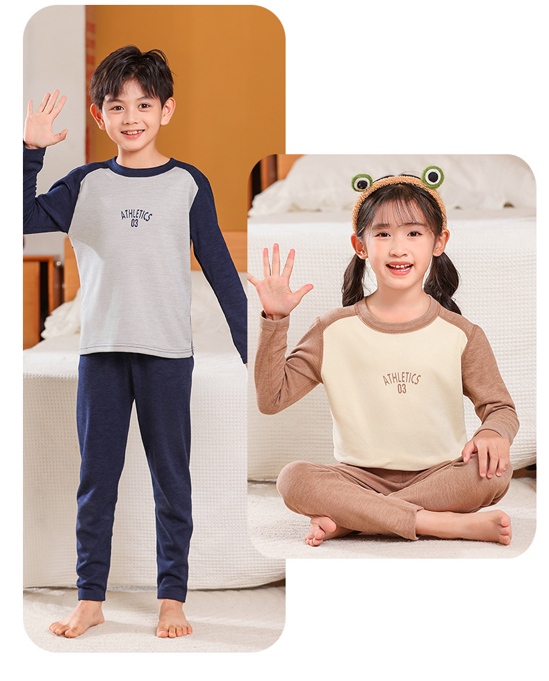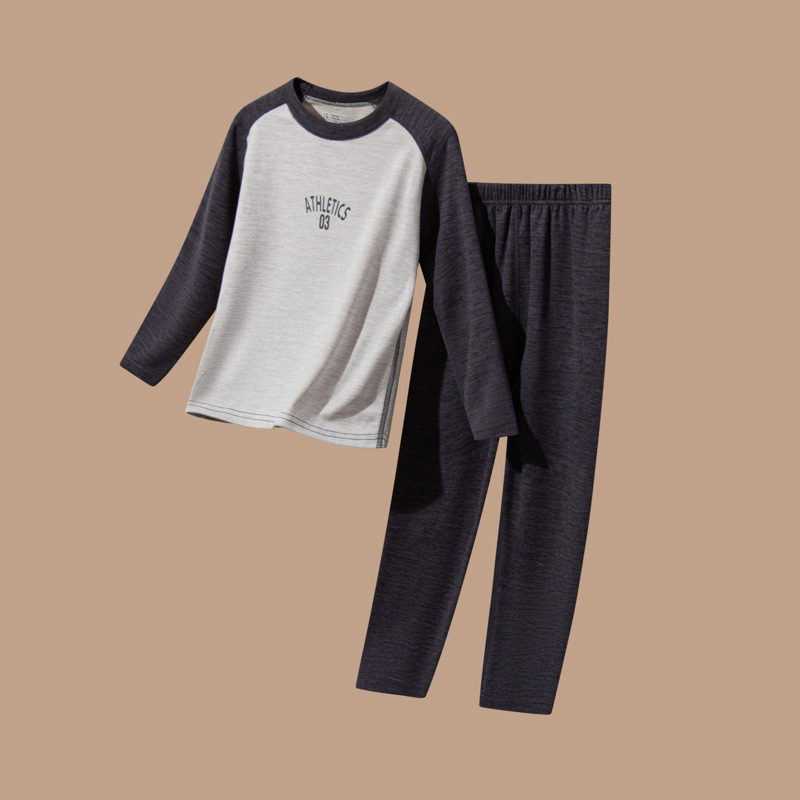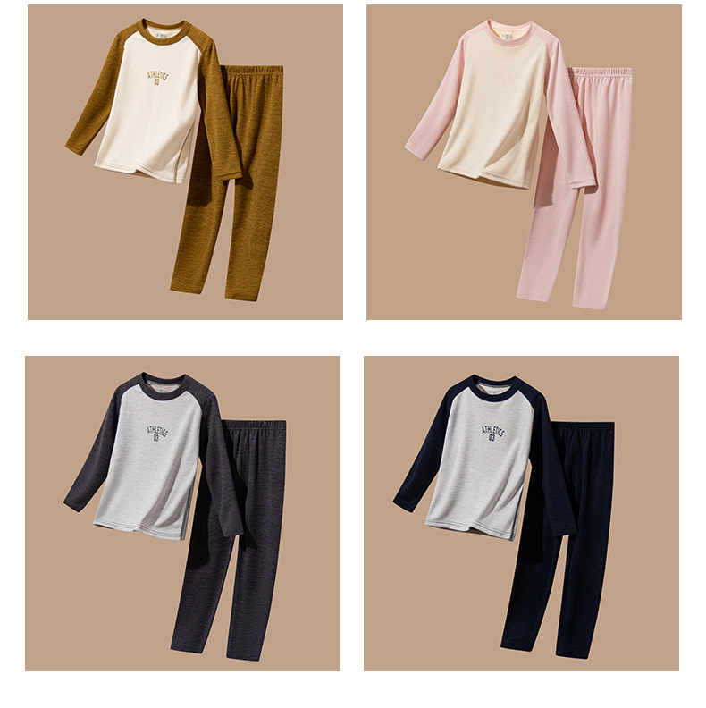 어린이 가을 옷과 바지 세트 울 실크 중대형 어린이 청소년 가을 새로운 남성과 여성의 겨울 열 속옷스토어 가기