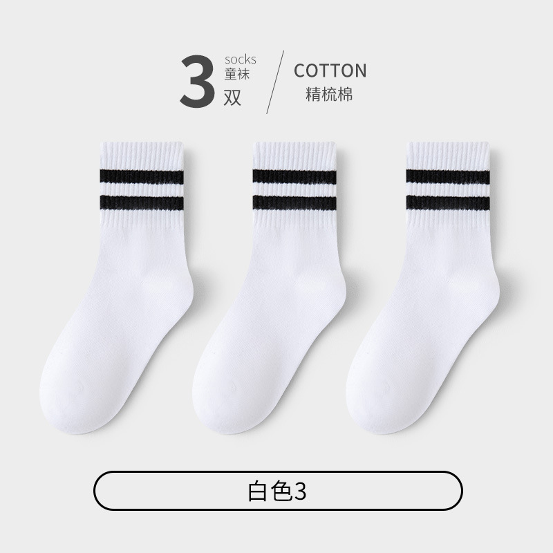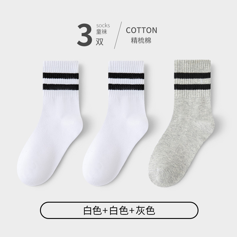 어린이 양말 봄과 가을 A 클래스 코튼 양말 소년과 소녀 학생 클래식 솔리드 컬러 흑백 회색 양말 통기성 땀 흡수