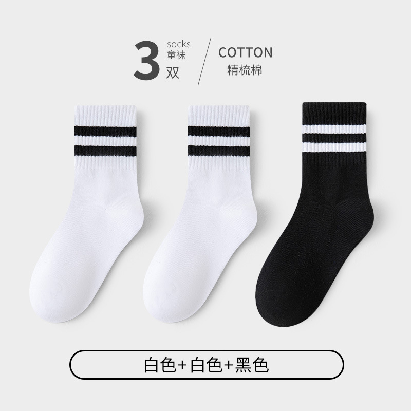 어린이 양말 봄과 가을 A 클래스 코튼 양말 소년과 소녀 학생 클래식 솔리드 컬러 흑백 회색 양말 통기성 땀 흡수스토어 가기