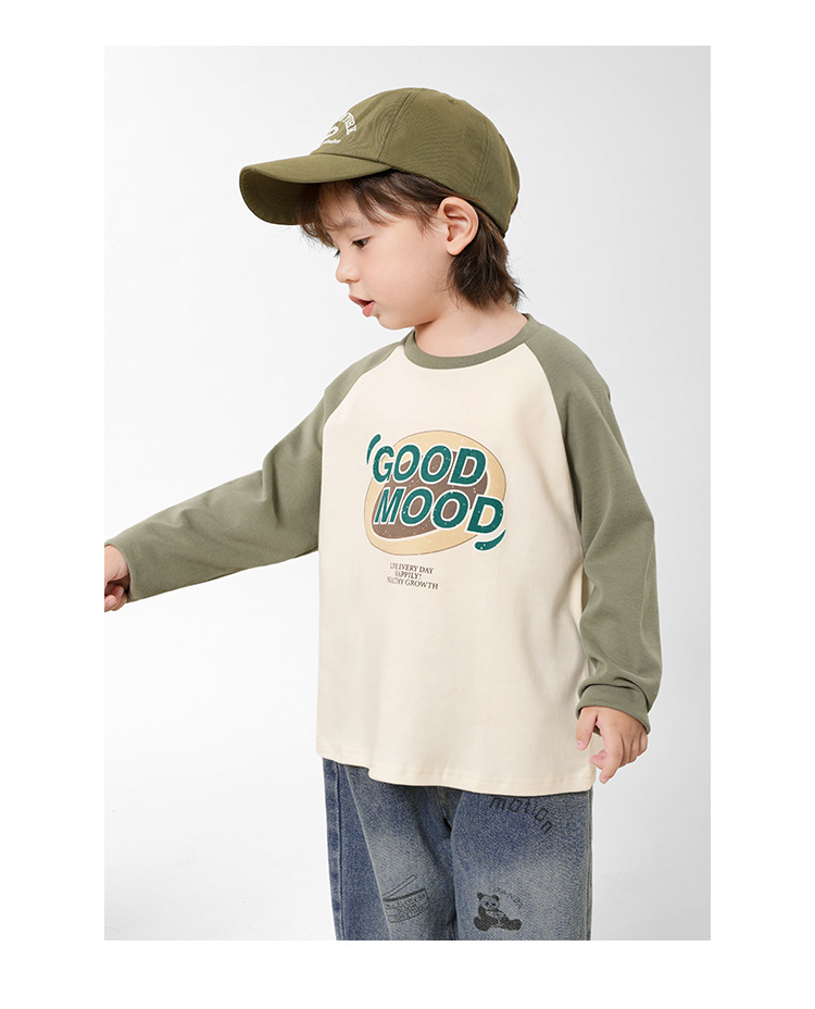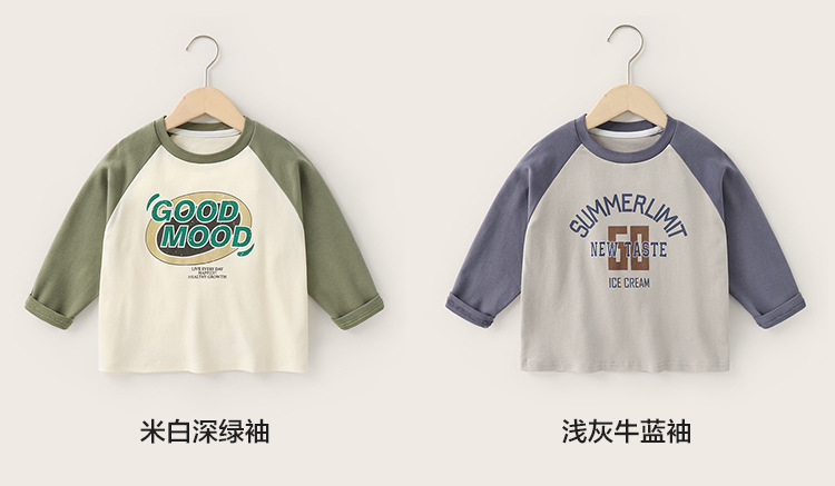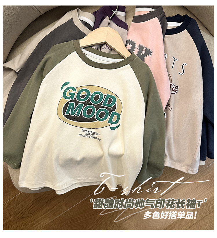 [7A 항균] AINI 어린이 인쇄 긴 소매 티셔츠, 한국 봄 · 가을 어린이 착용 아기 크루 넥베이스 셔츠스토어 가기
