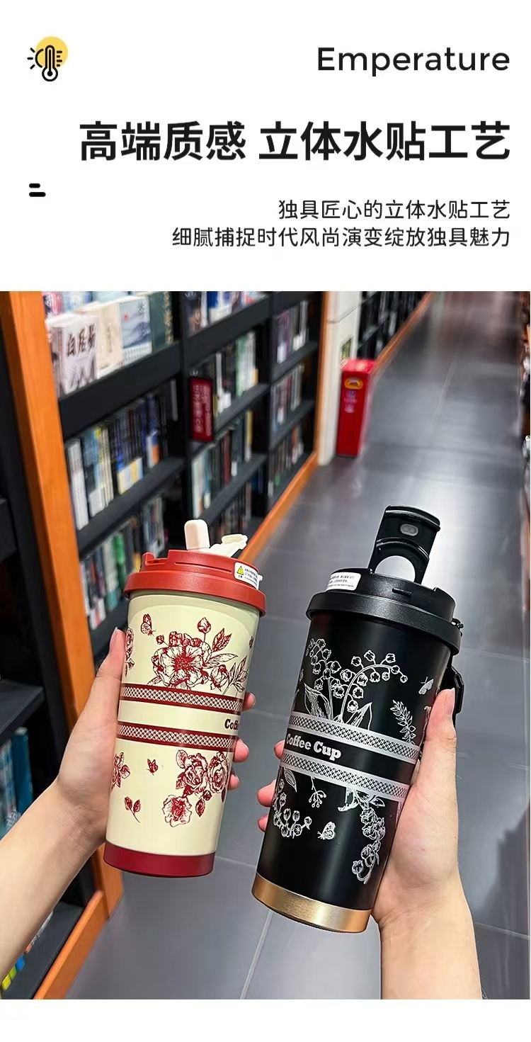 Fanhua 더블 마시는 커피 컵 높은 색상 가치 316 스테인레스 스틸 보온병 컵 자동차 대용량 음주 컵 소년 소녀스토어 가기