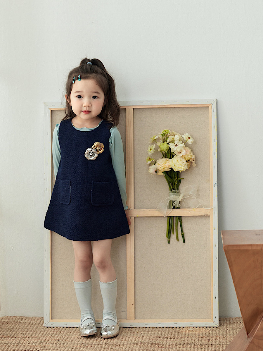 • 두 개의 꽃이 달린 Xiaoxiangfeng 모직 조끼 드레스