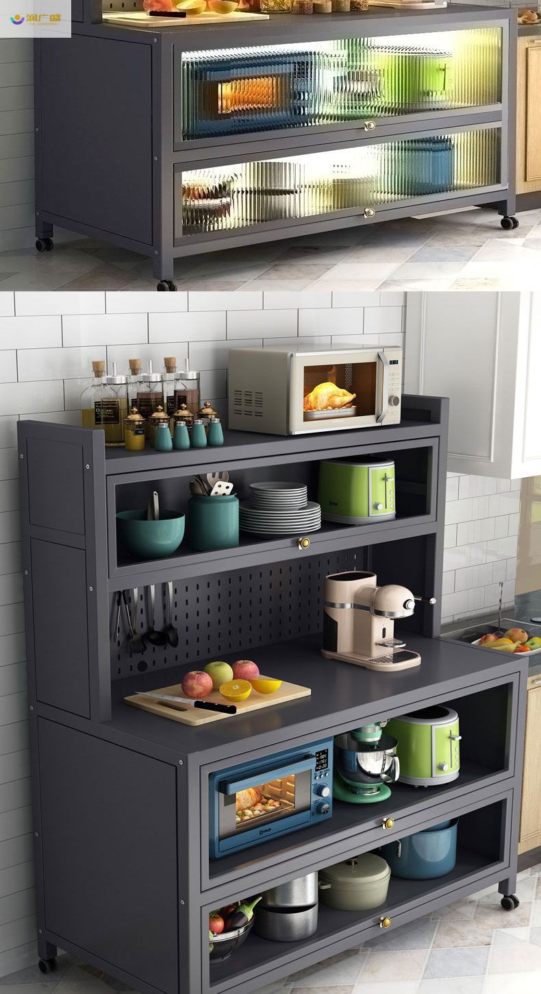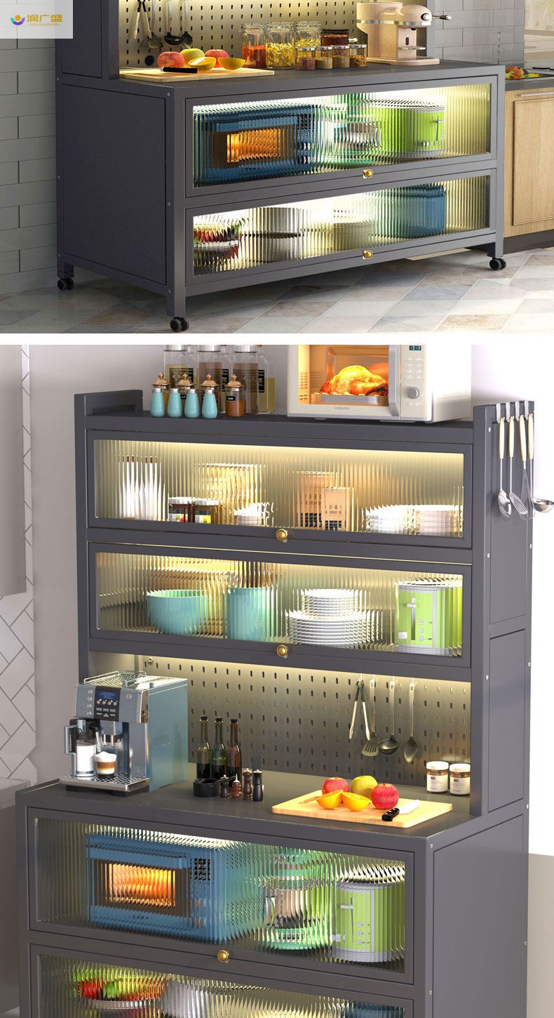 식당 보관 캐비닛 도어 보관 캐비닛 주방 바닥 캐비닛 전자 레인지 쿠커 다층 기능 보관 캐비닛 랙