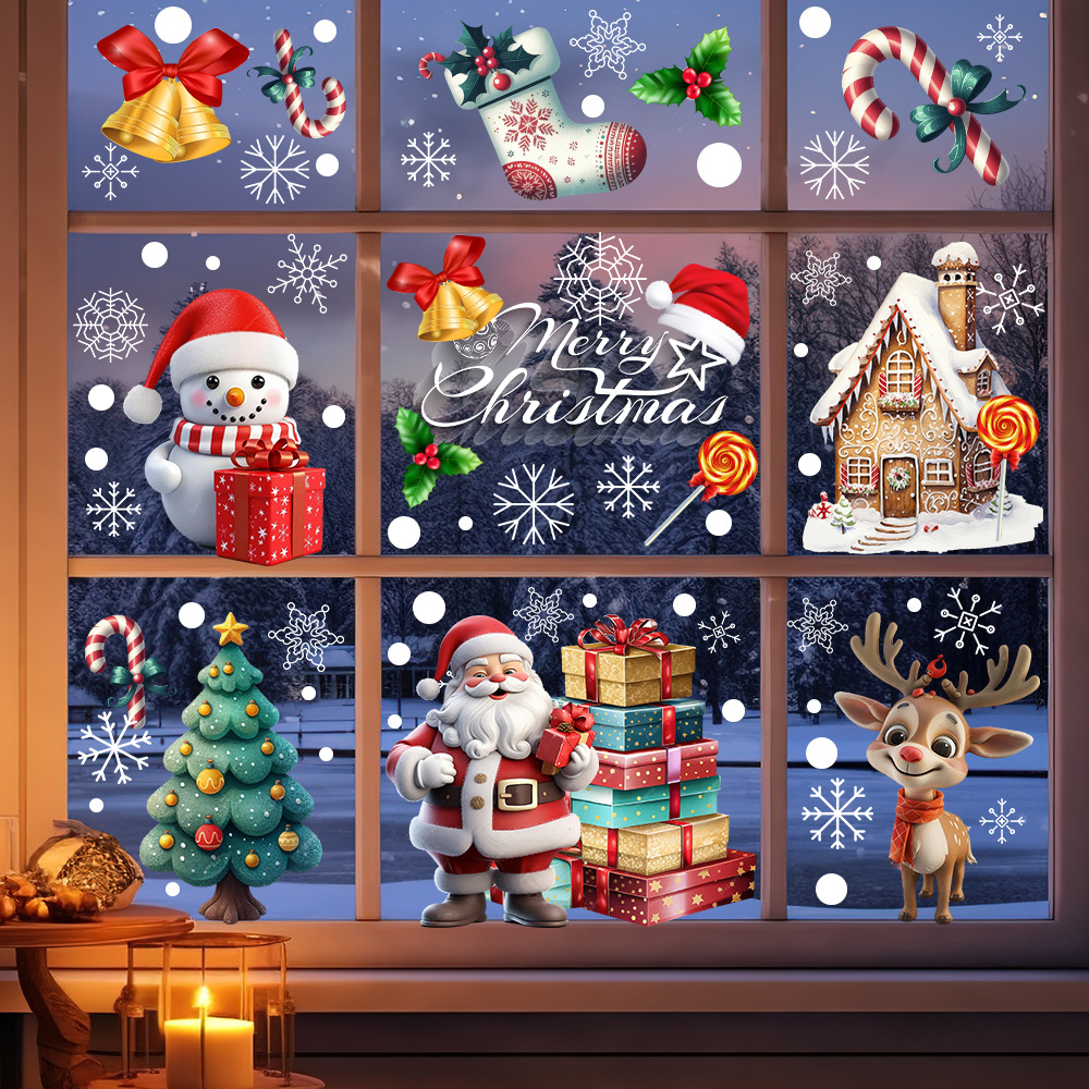 Yiyao JD2314 크리스마스 3d 비주얼 엘크 유리 스티커 방수 분위기 장식 접착제가없는 정전기 스티커스토어 가기