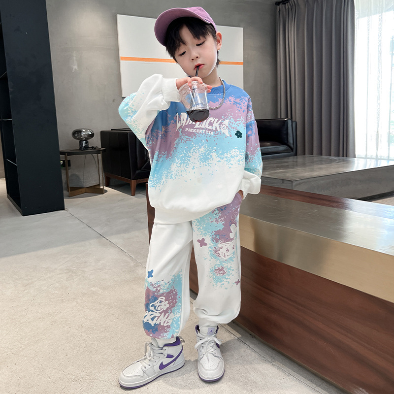 소년 가을 의류 세트 2024 새로운 어린이 가을 운동복 유행 멋진 멋쟁이 소년 봄과 가을