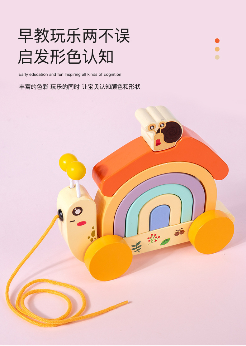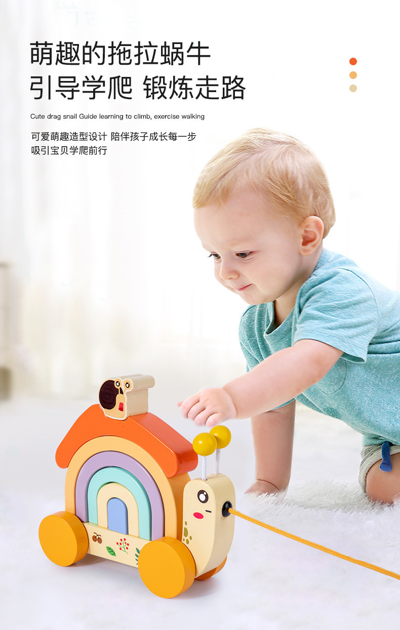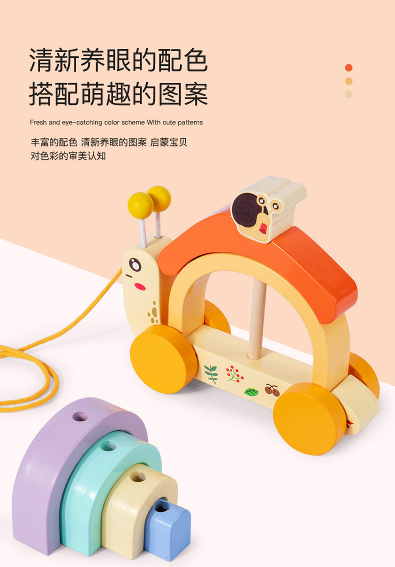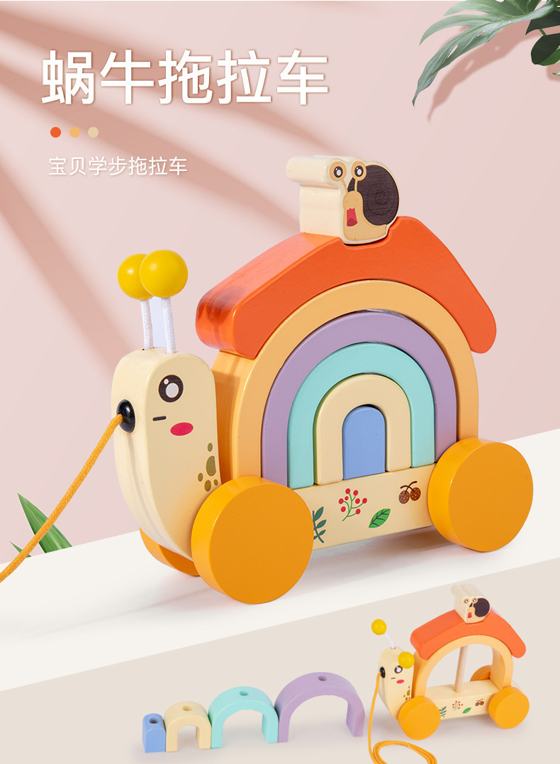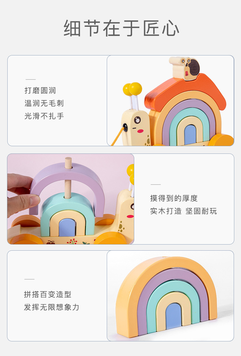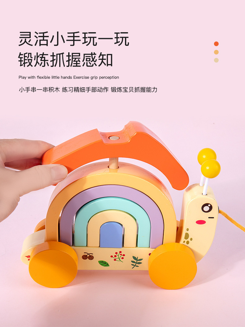 Weiwihu 나무 달팽이 트랙터 아기 교육 스태킹 무지개 빌딩 블록 자동차 Amazon 베스트 셀러 조기 교육 장난감스토어 가기