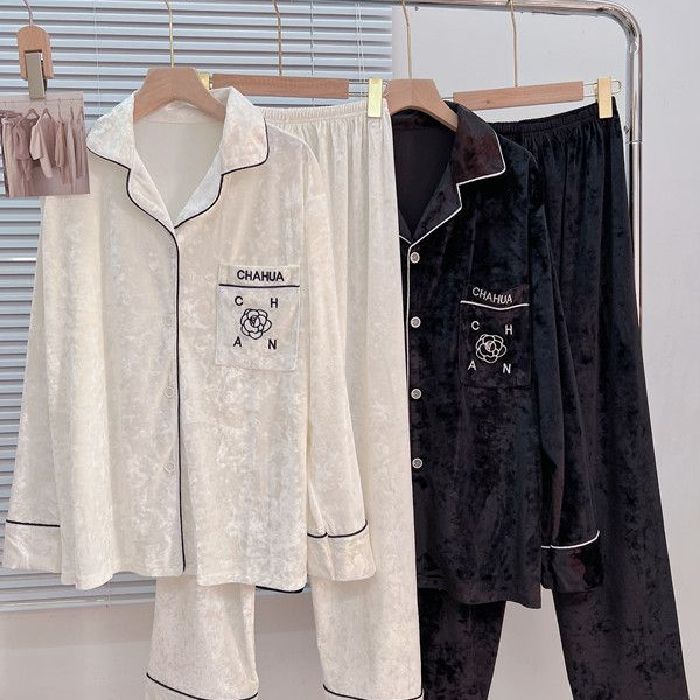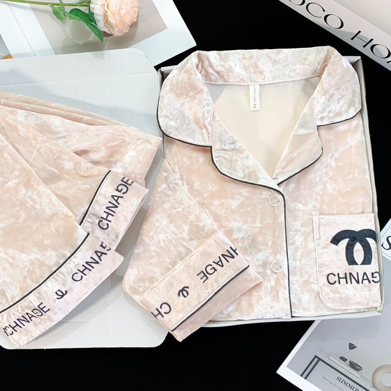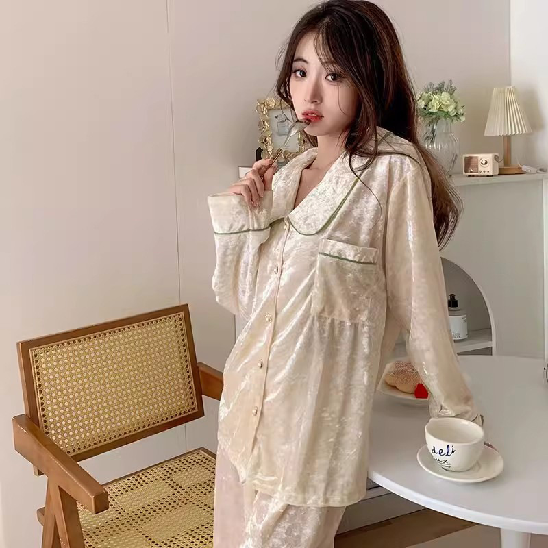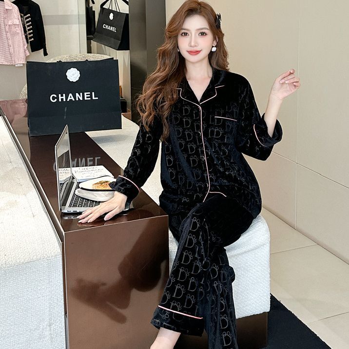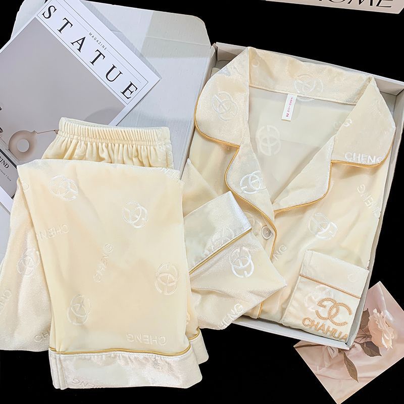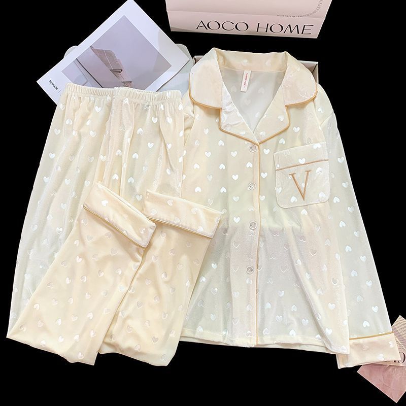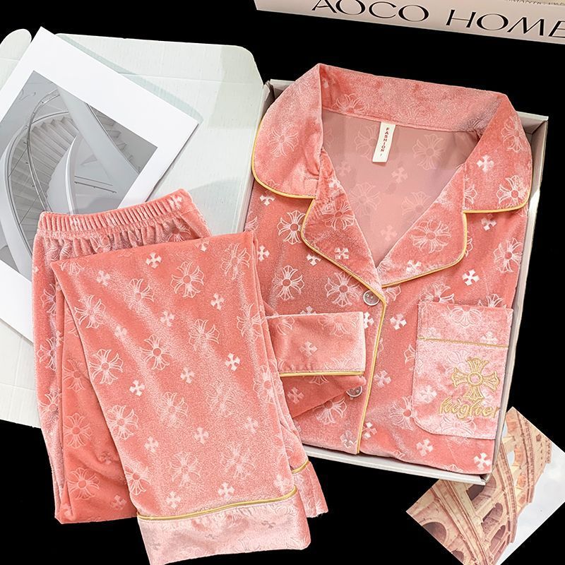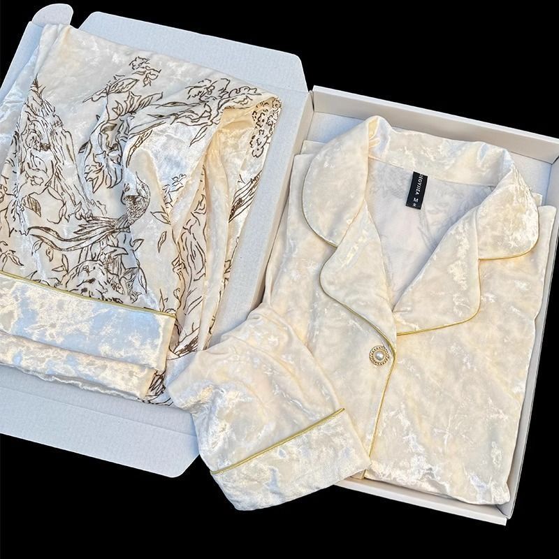 가을과 겨울 골드 다이아몬드 벨벳 새로운 잠옷 여성의 고급 순수 코트 스타일 달콤한 골드 벨벳 레저 홈 서비스 세트 공장스토어 가기