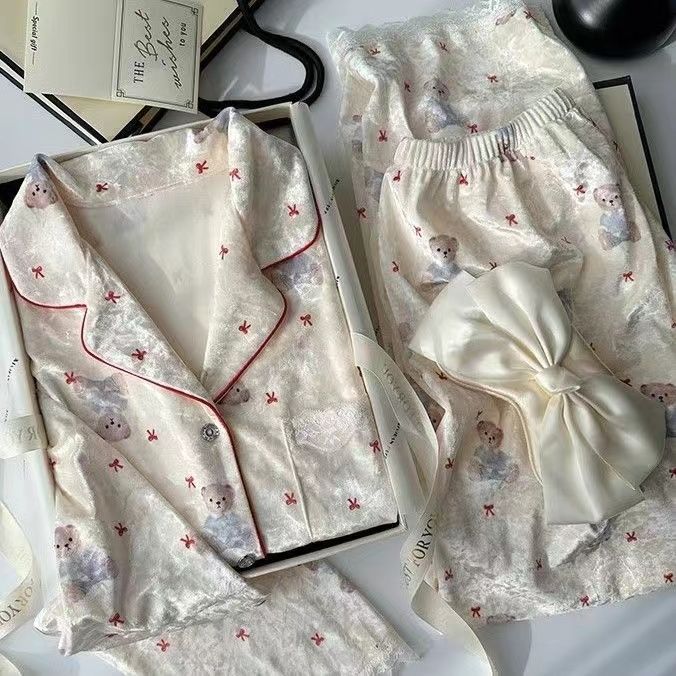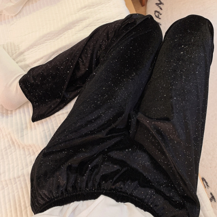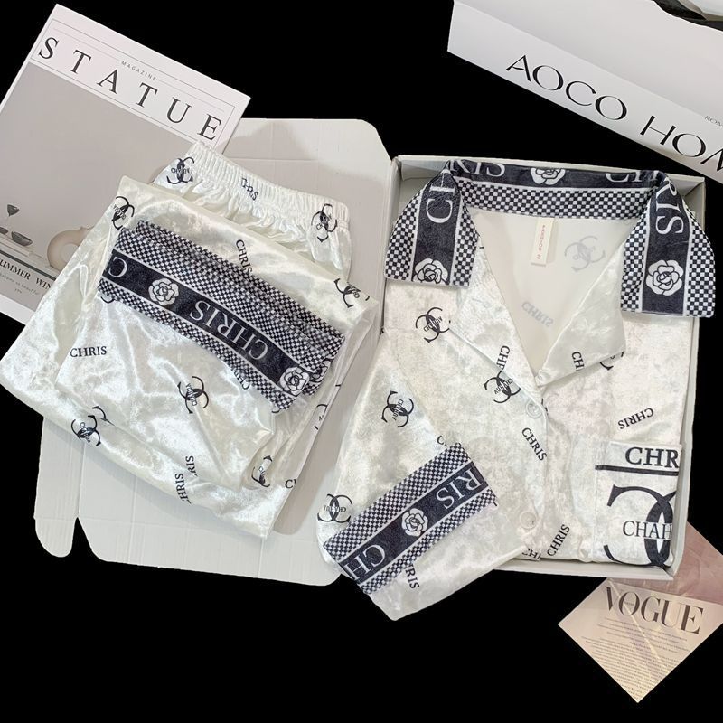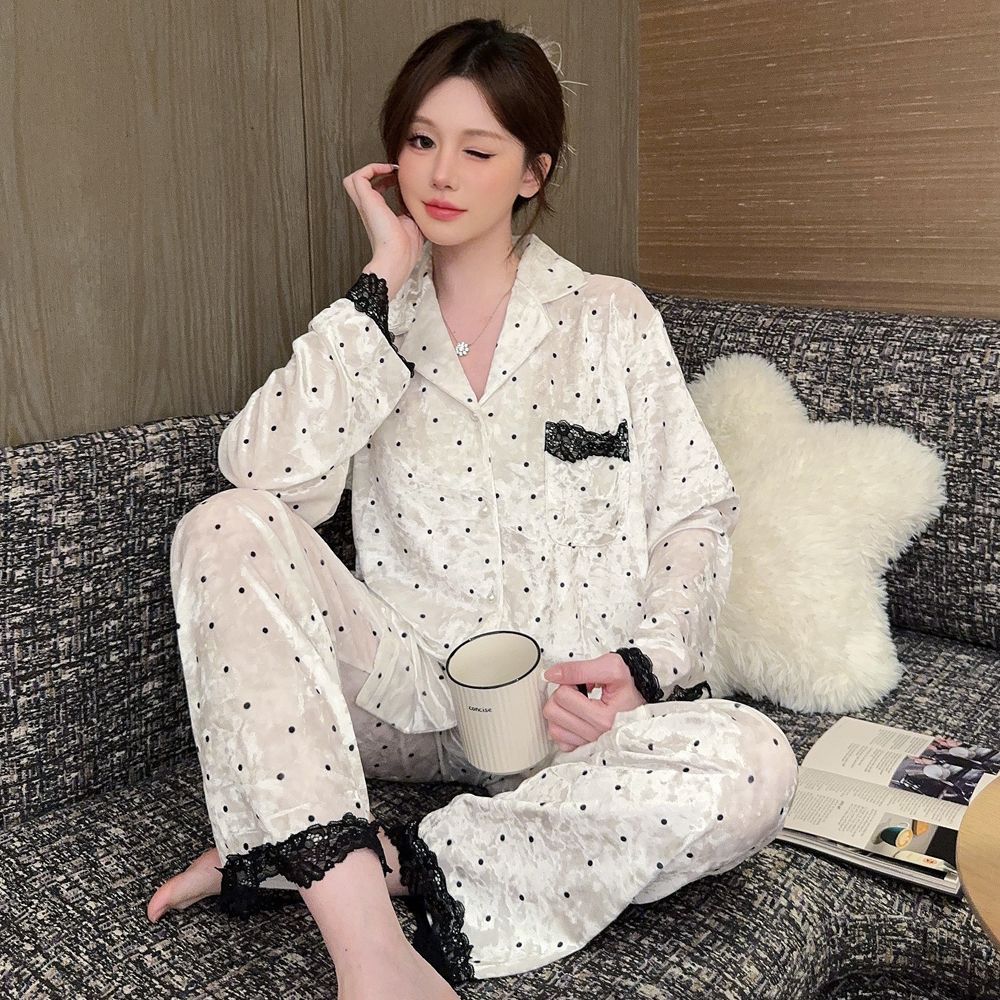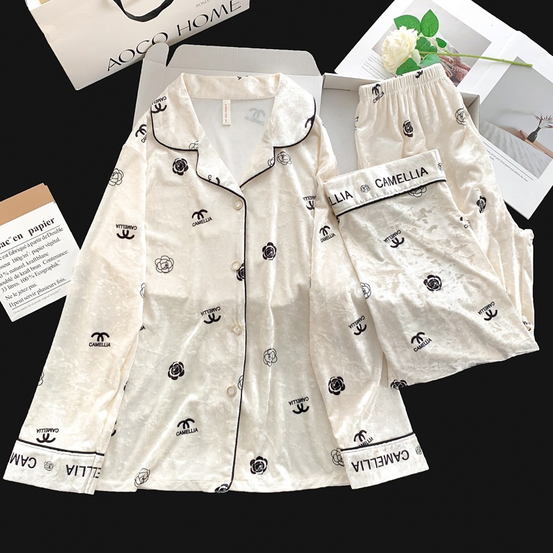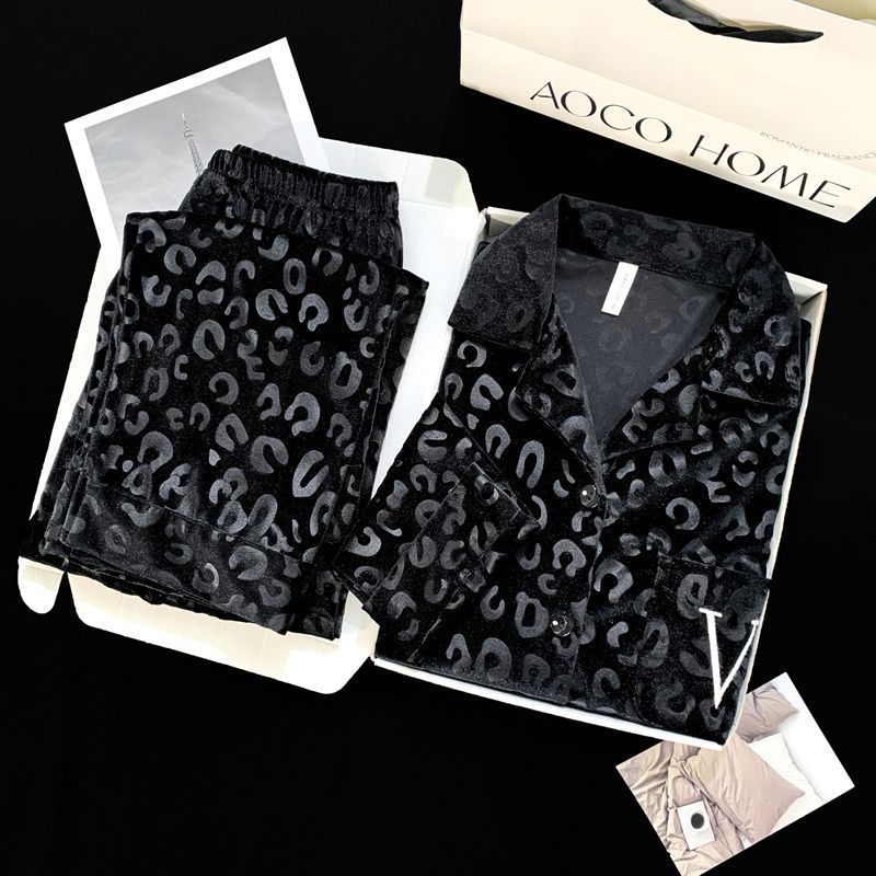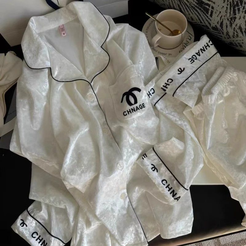 가을과 겨울 골드 다이아몬드 벨벳 새로운 잠옷 여성의 고급 순수 코트 스타일 달콤한 골드 벨벳 레저 홈 서비스 세트 공장스토어 가기