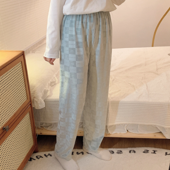 • MY409 # 정사각형 나비 무늬 블루 팬츠