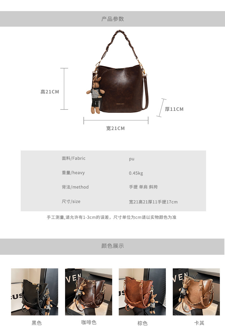 여성 가방 신상품 통근용 레트로 스타일 가방 정교한 고급 질감 다용도 크로스백 인기 핸드백 버킷백스토어 가기