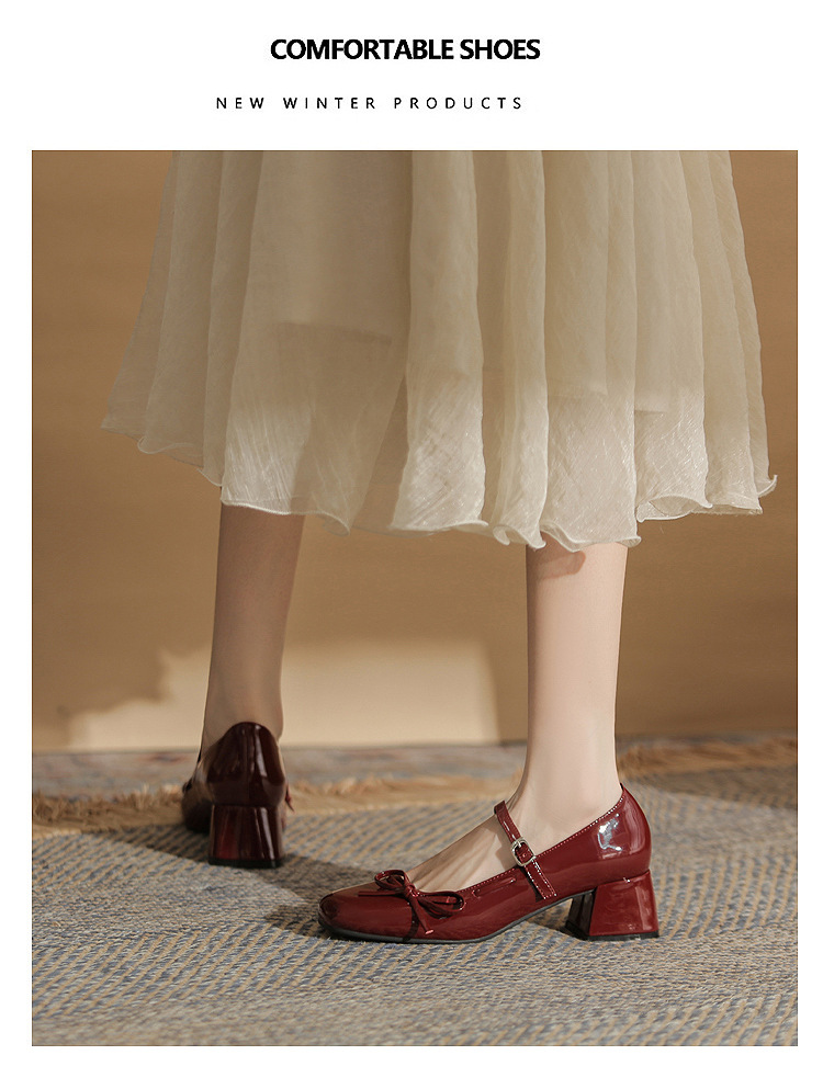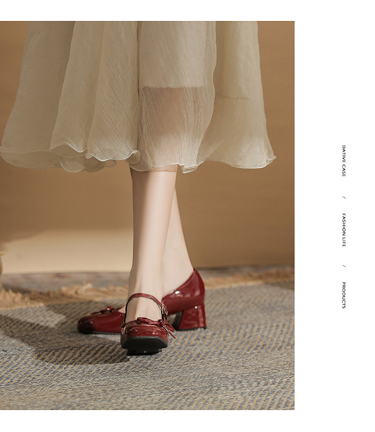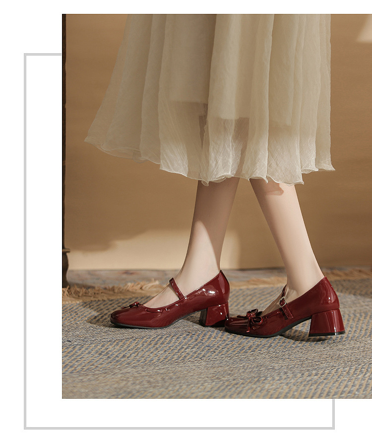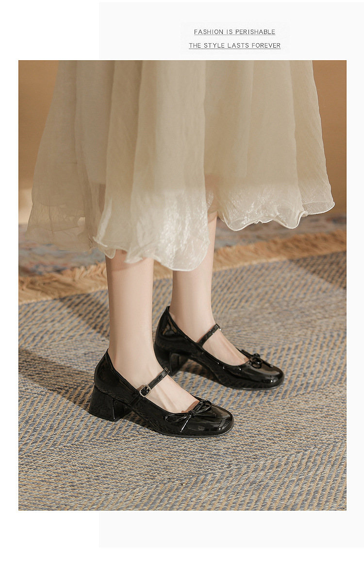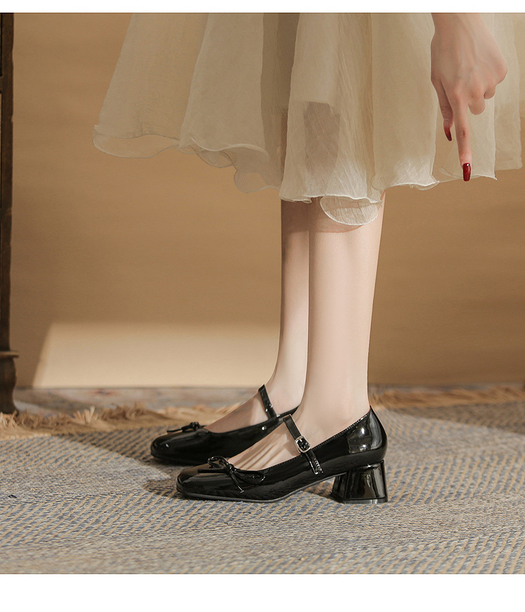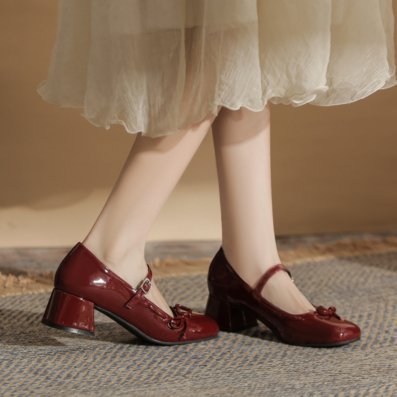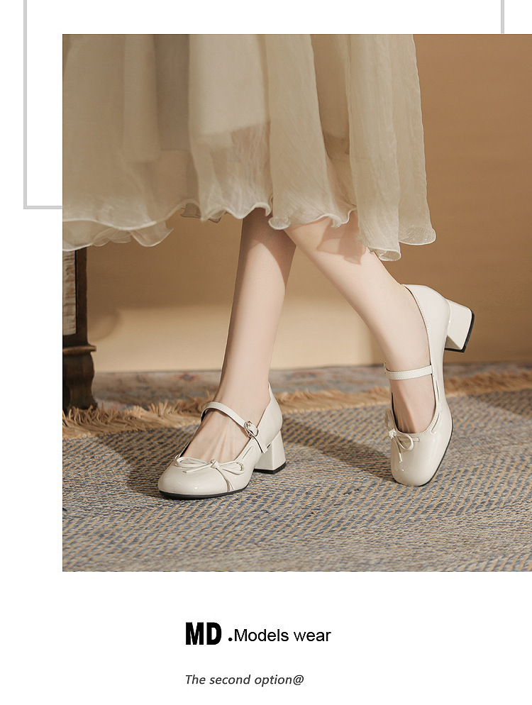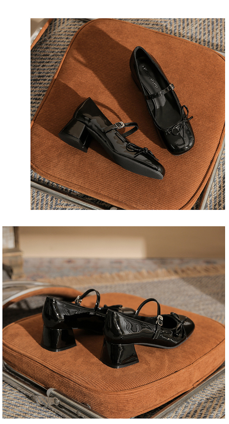 진강 MY4511 청키 힐 메리 제인 여성 신발 2024 새 봄 가을 가죽 신발 하이힐 얕은 입 신발 여성스토어 가기