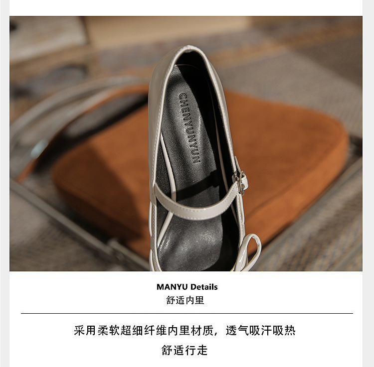 진강 MY4511 청키 힐 메리 제인 여성 신발 2024 새 봄 가을 가죽 신발 하이힐 얕은 입 신발 여성
