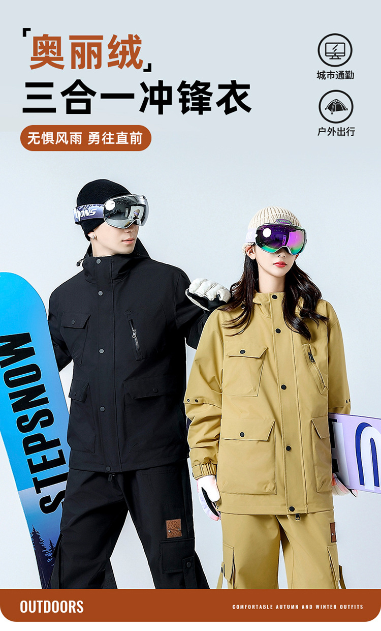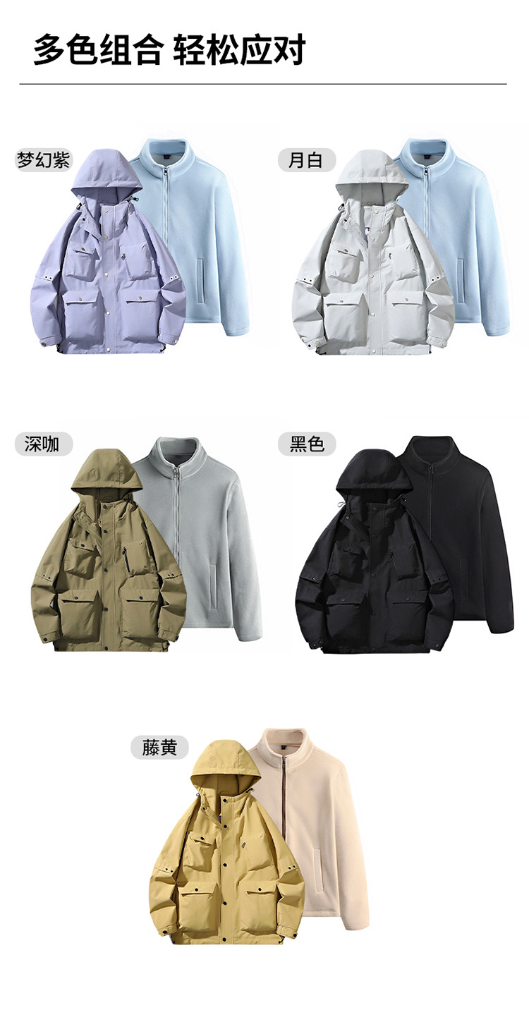 2024 남성과 여성의 가을과 겨울 애호가 3 대 1 후드 패션 브랜드 방풍 방수 따뜻한 패션 코트