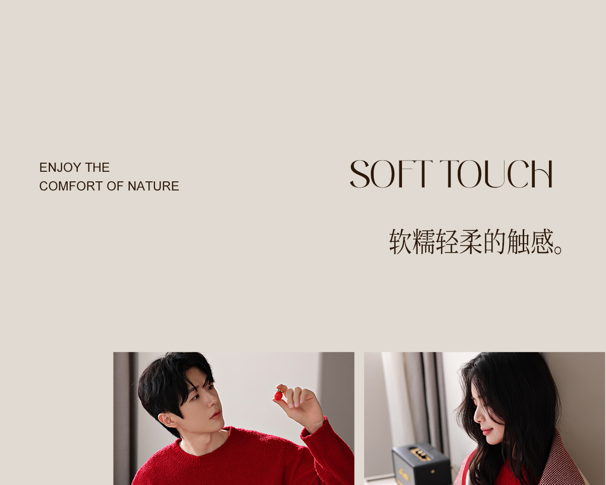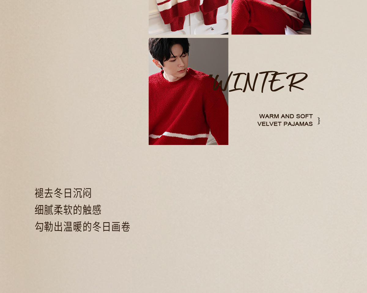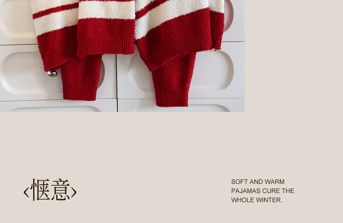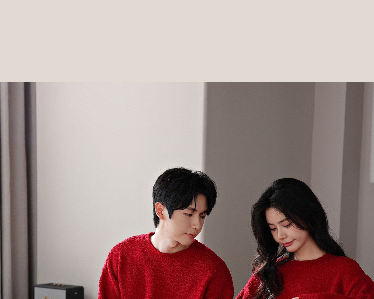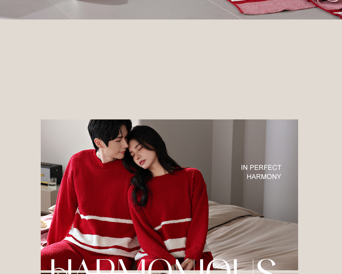 【부드러운 반양털】가을 겨울 커플 잠옷 남녀용 산호색 두꺼운 보온 세트스토어 가기