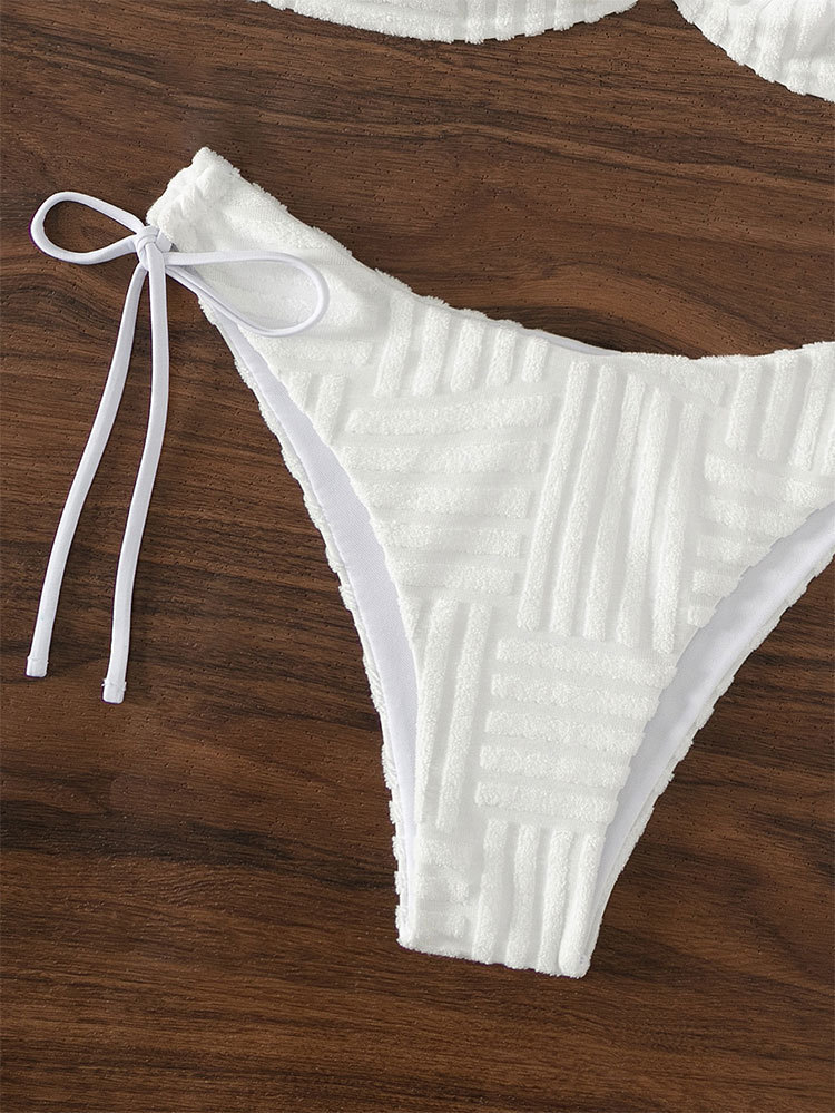 2024 새로운 수영복 여성 아마존 섹시 솔리드 컬러 레이스 업 스플릿 트라이앵글 비치 비키니 수영복 도매