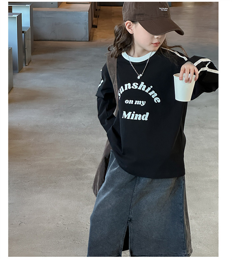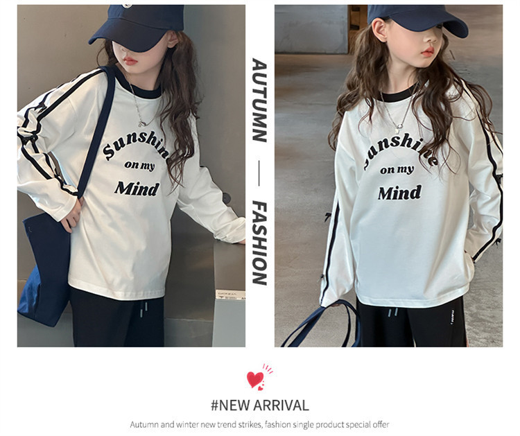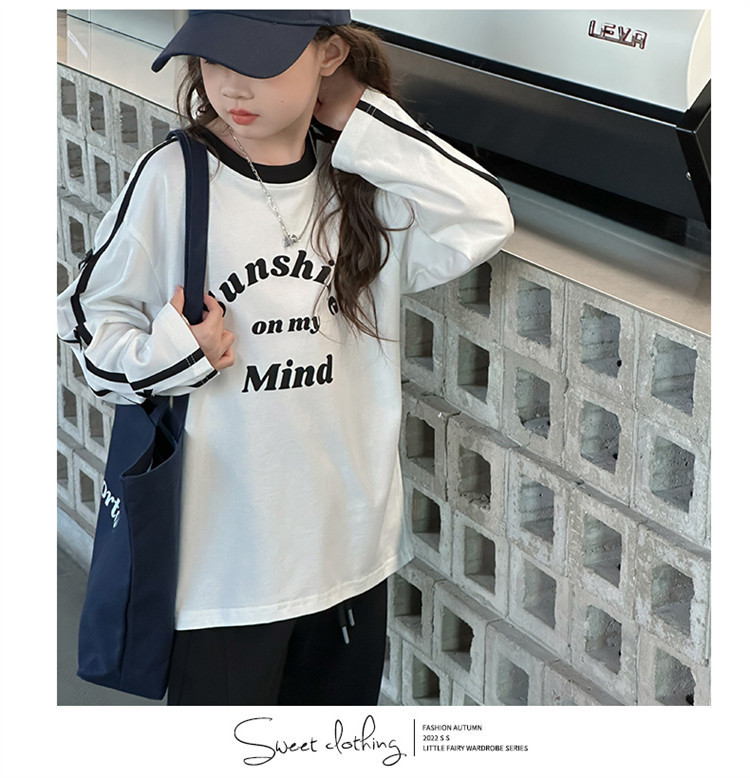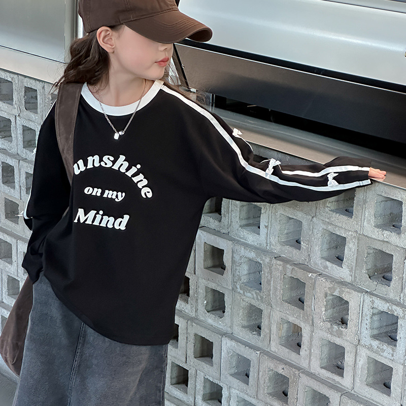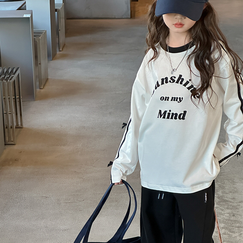 어린이 리본 티셔츠 가을 소녀 새로운 중대형 어린이 승무원 편지 소녀 활베이스 셔츠스토어 가기