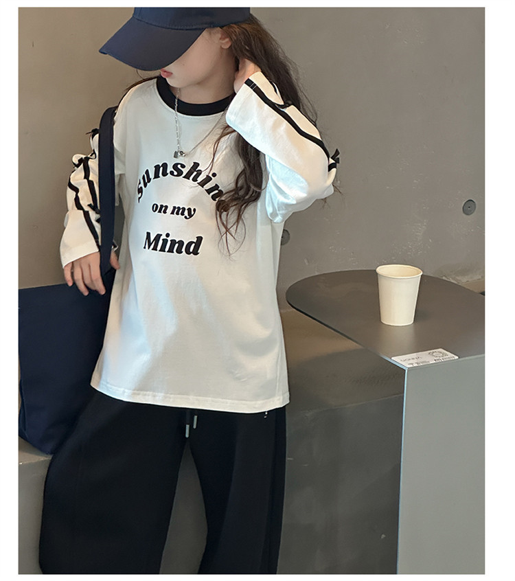 어린이 리본 티셔츠 가을 소녀 새로운 중대형 어린이 승무원 편지 소녀 활베이스 셔츠