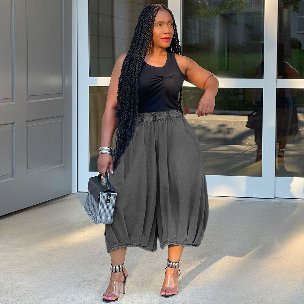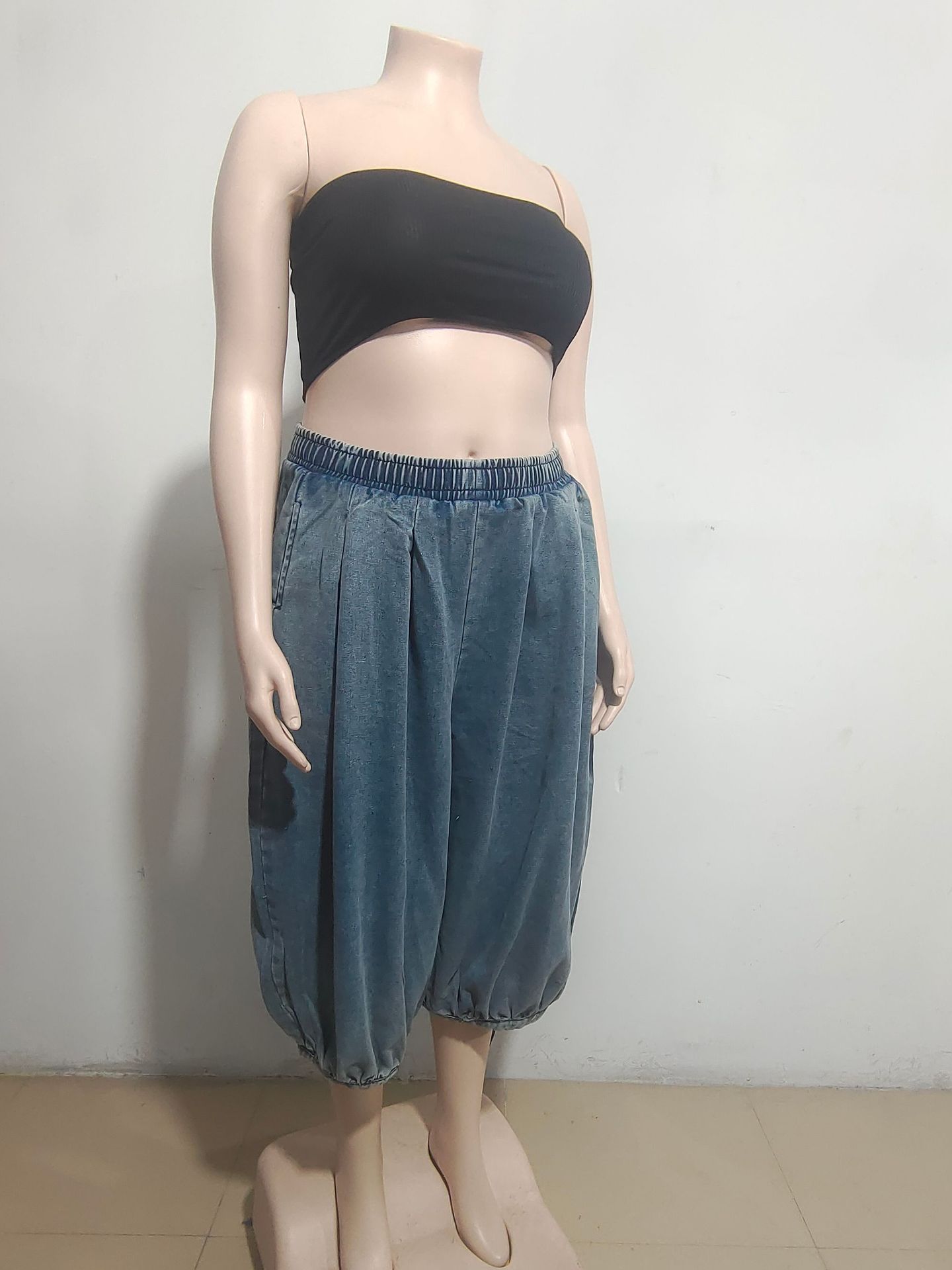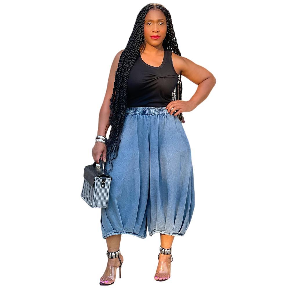 유럽과 미국 국경 여성 의류 아마존 스트리트 패션 캐주얼 청바지 탄성 허리 스트레이트 레그 크롭 바지