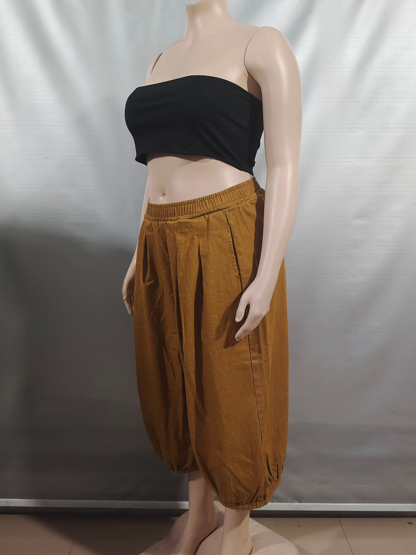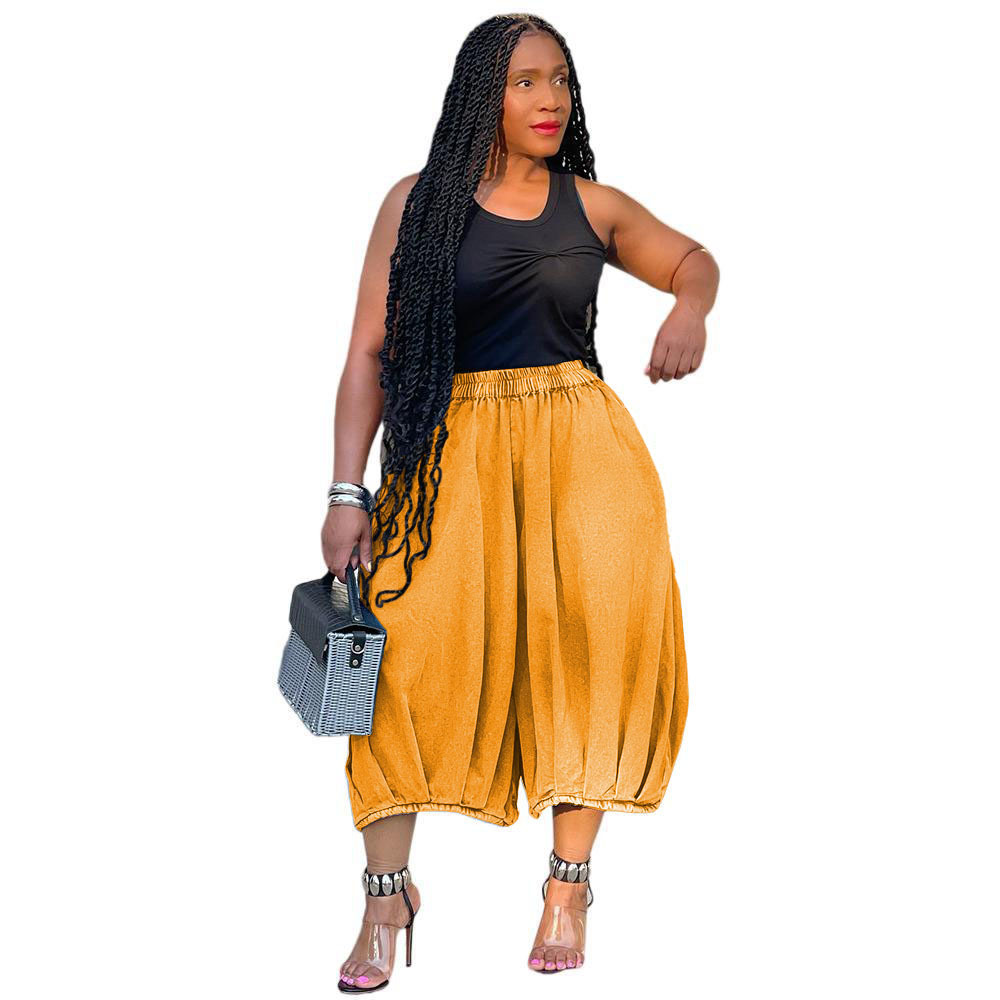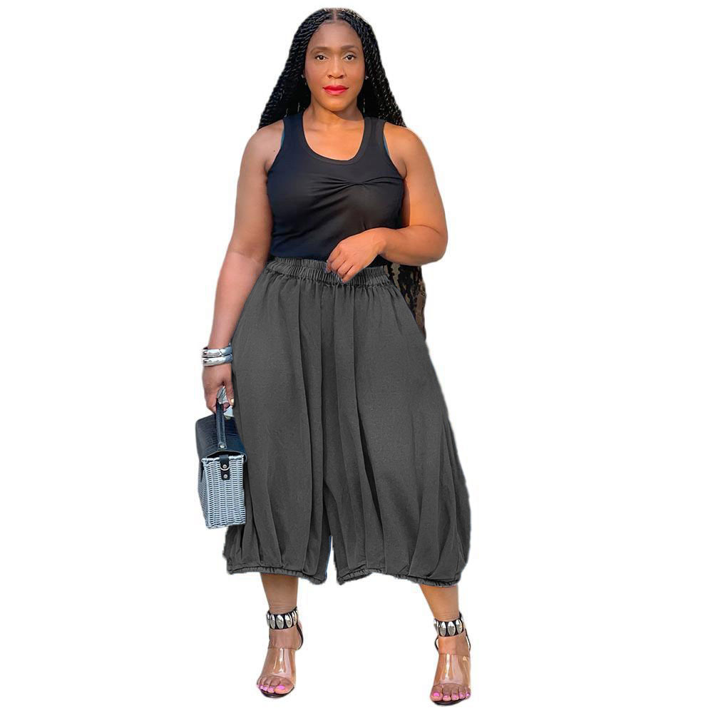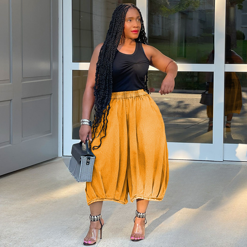유럽과 미국 국경 여성 의류 아마존 스트리트 패션 캐주얼 청바지 탄성 허리 스트레이트 레그 크롭 바지