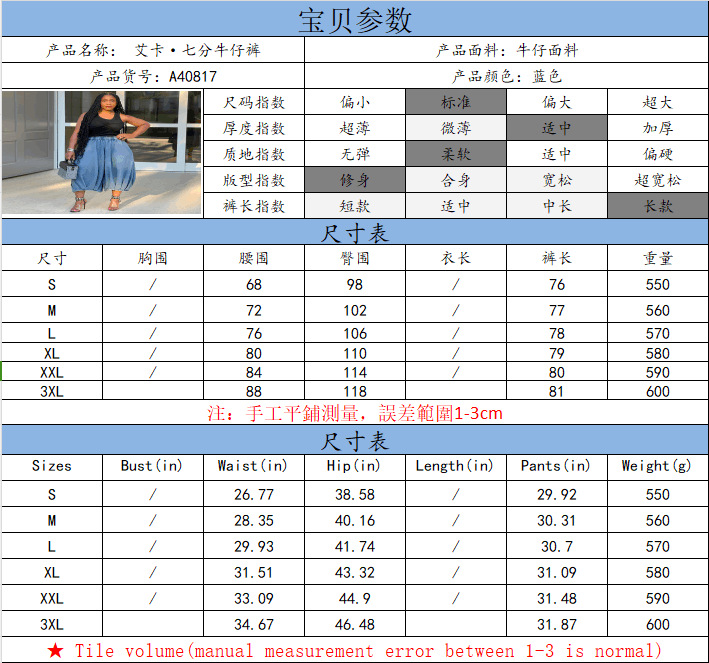 유럽과 미국 국경 여성 의류 아마존 스트리트 패션 캐주얼 청바지 탄성 허리 스트레이트 레그 크롭 바지스토어 가기